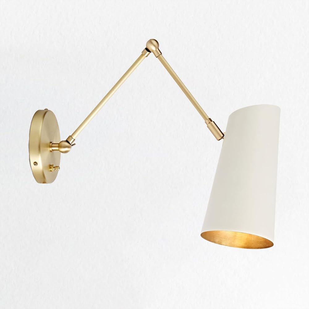 Metal Shade Wall Sconce (Articulating, Ivory with Brass Pole)