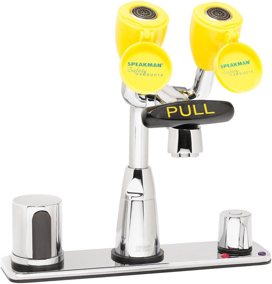 Speakman SEF-1824 Polished Brass Deck Mount Faucet with Integrated Emergency Eyewash and Above-Counter Mixing Valve