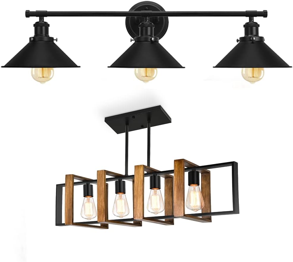 Alynzee 3 Black Light Bathroom Vanity Light Fixtures+Kitchen Island Lighting,4-Light Dining Room Light Fixture Over Table