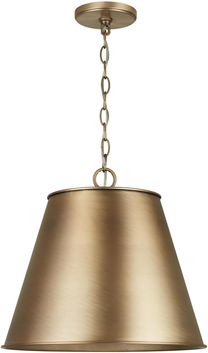 337811AD Welker Metal Cone Pendant, 1-Light 100 Watts, 15" H x 16" W, Aged Brass