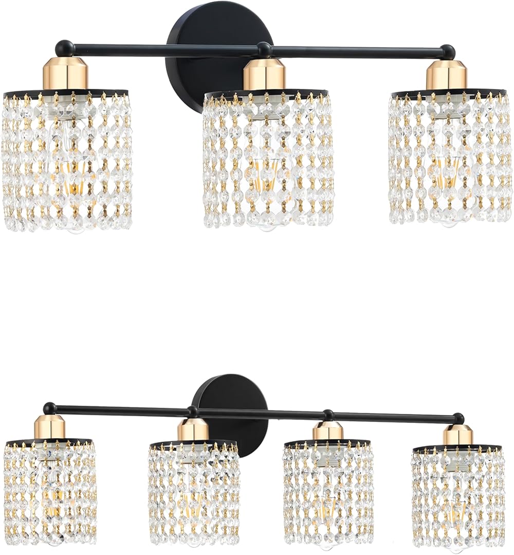 JolyWell 3/4-Light Crystal Tassel Bathroom Vanity Light,E26 Morden Vanity Wall Sconces Light with Crystal Light Chain,Modern Brushed Nickel Bathroom Lights Over Mirror for Bedroom Living Room