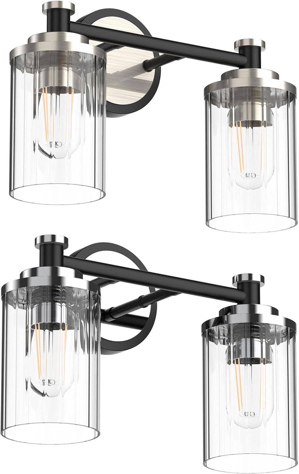 Bathroom Lighting Fixtures Bathroom Vanity Light with Cylindrical Clear Stripes Glass Lampshade E26 Socket Base Bathroom Lighting Fixtures Over Mirror