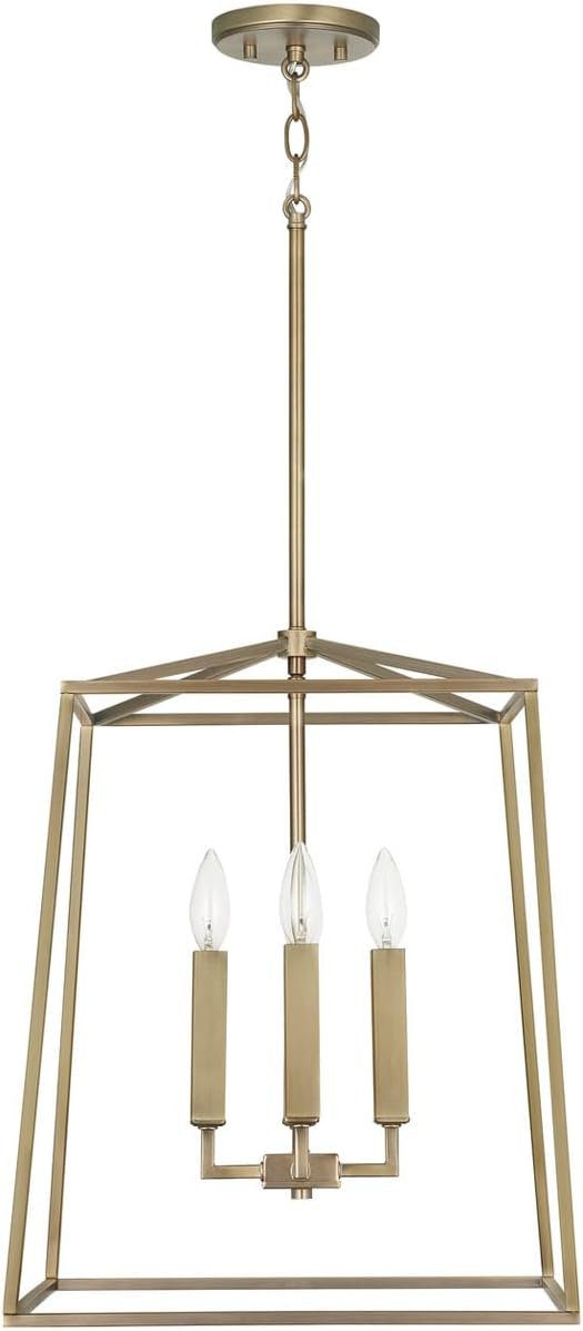 537642AD Thea Lantern Foyer Pendant, 4-Light 240 Total Watts, 20" H x 16" W, Aged Brass