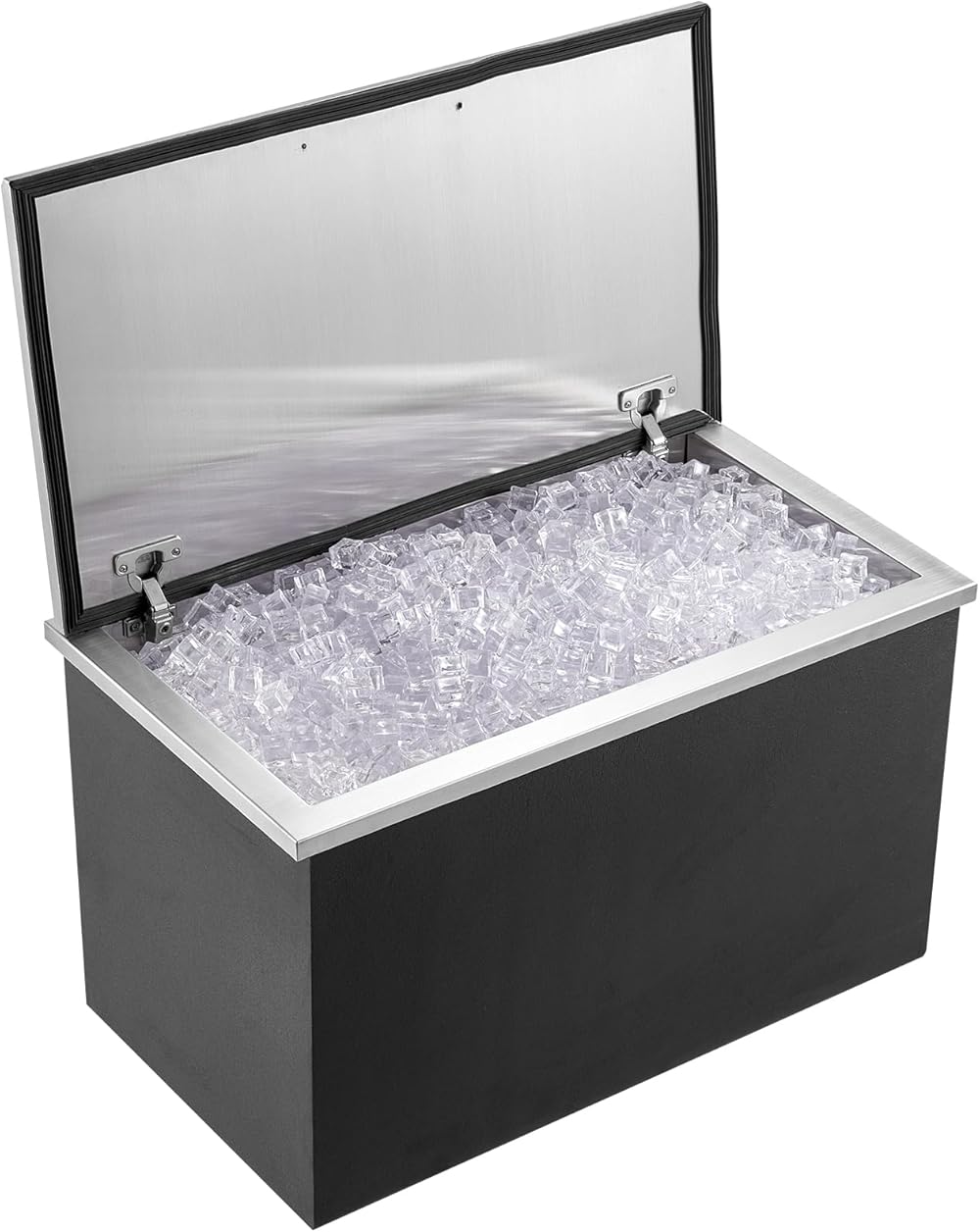 VEVOR Drop in Ice Chest, 24" L x 20" W x 15" H Stainless Steel Ice Cooler, Commercial Ice Bin with Hinged Cover, 40 qt Outdoor Kitchen Ice Bar, Drain-Pipe and Drain Plug Included, for Cold Wine Beer