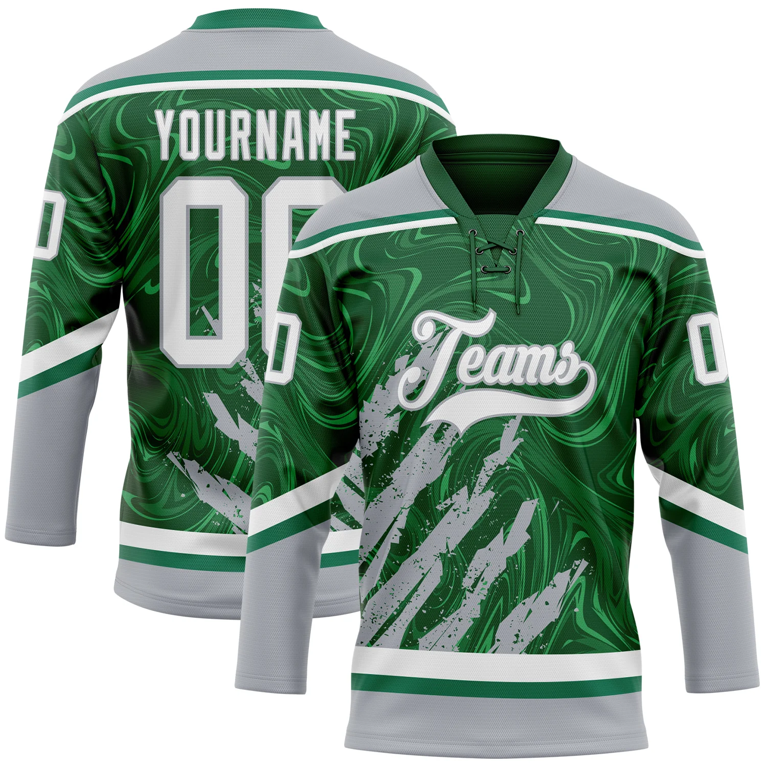 Custom Green White-Gray 3D Splash Art Hockey Lace Neck Jersey