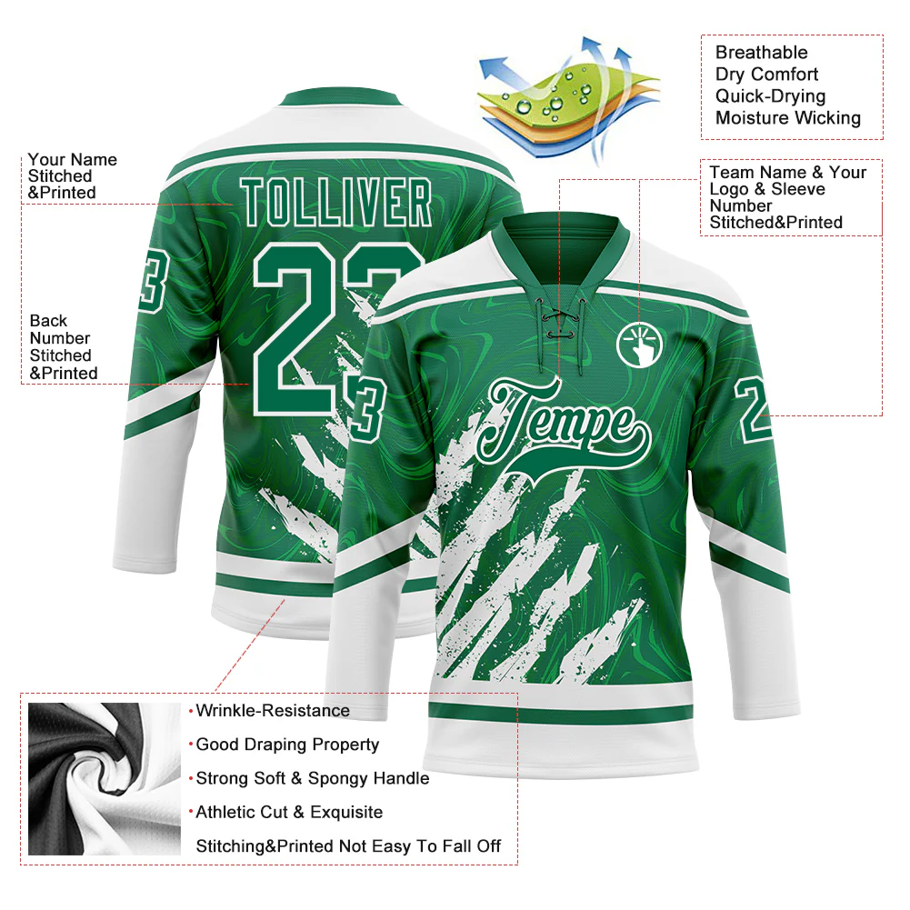 Custom Kelly Green White 3D Splash Art Hockey Lace Neck Jersey