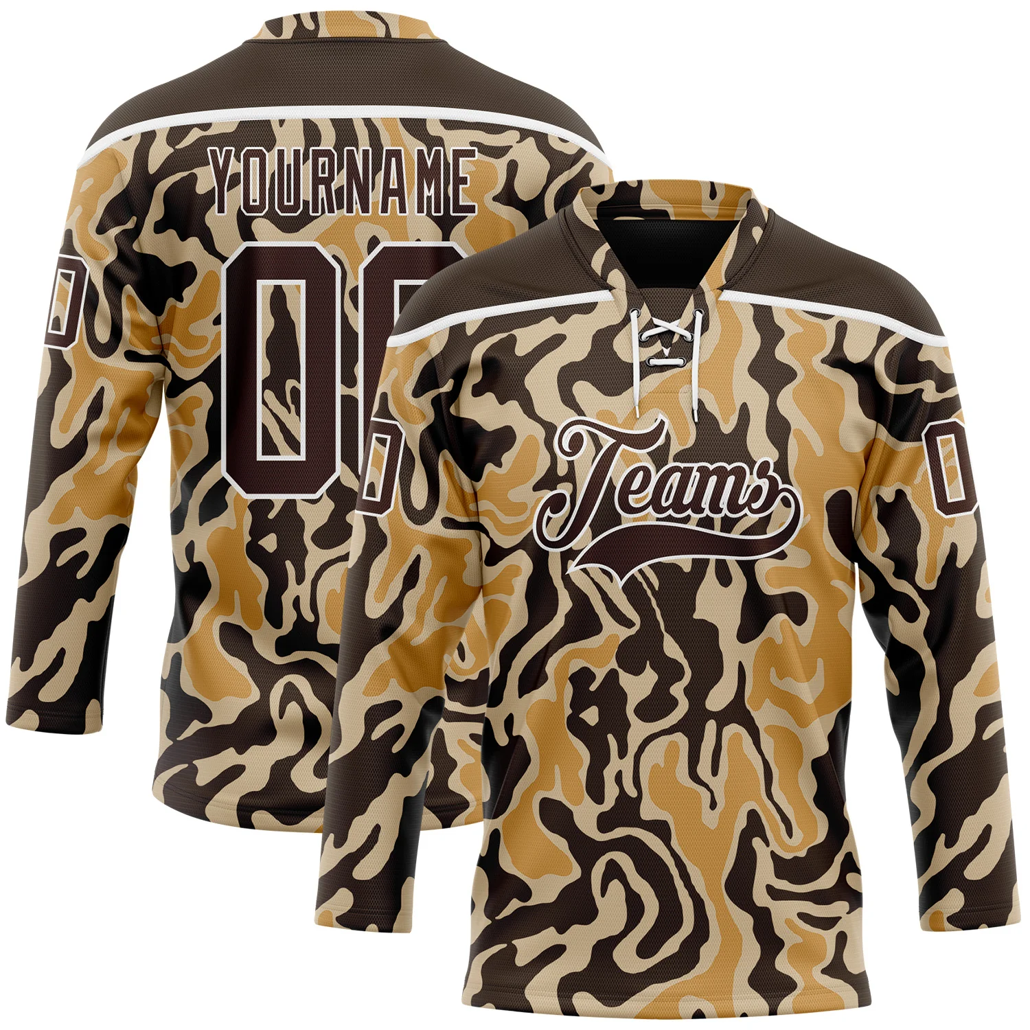 Custom Camo Brown-White 3D Camouflage Grunge Desert Hockey Lace Neck Jersey