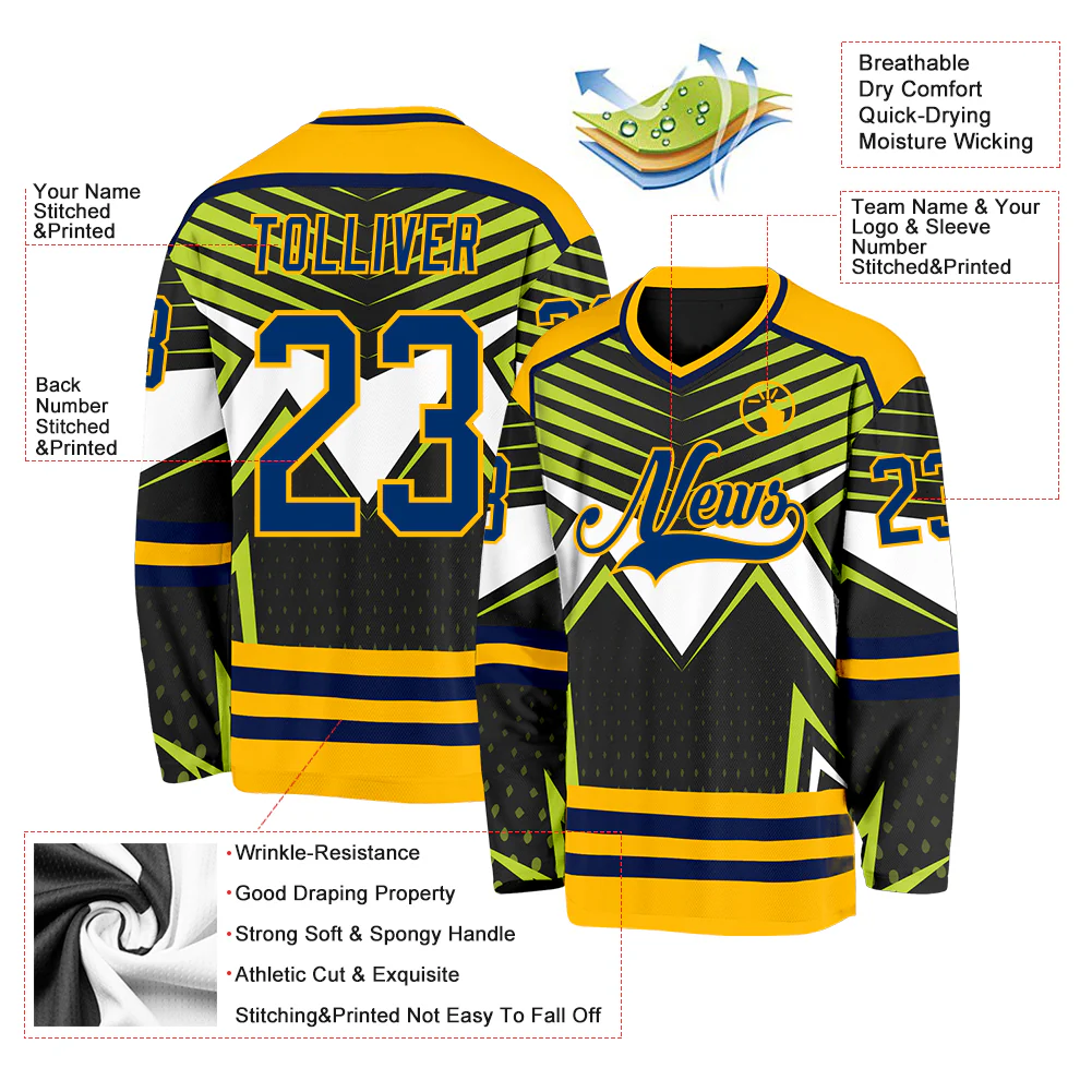 Custom Black US Navy Blue Green Navy Gold-White 3D Pattern Cyber Mecha E-sport Hockey Jersey