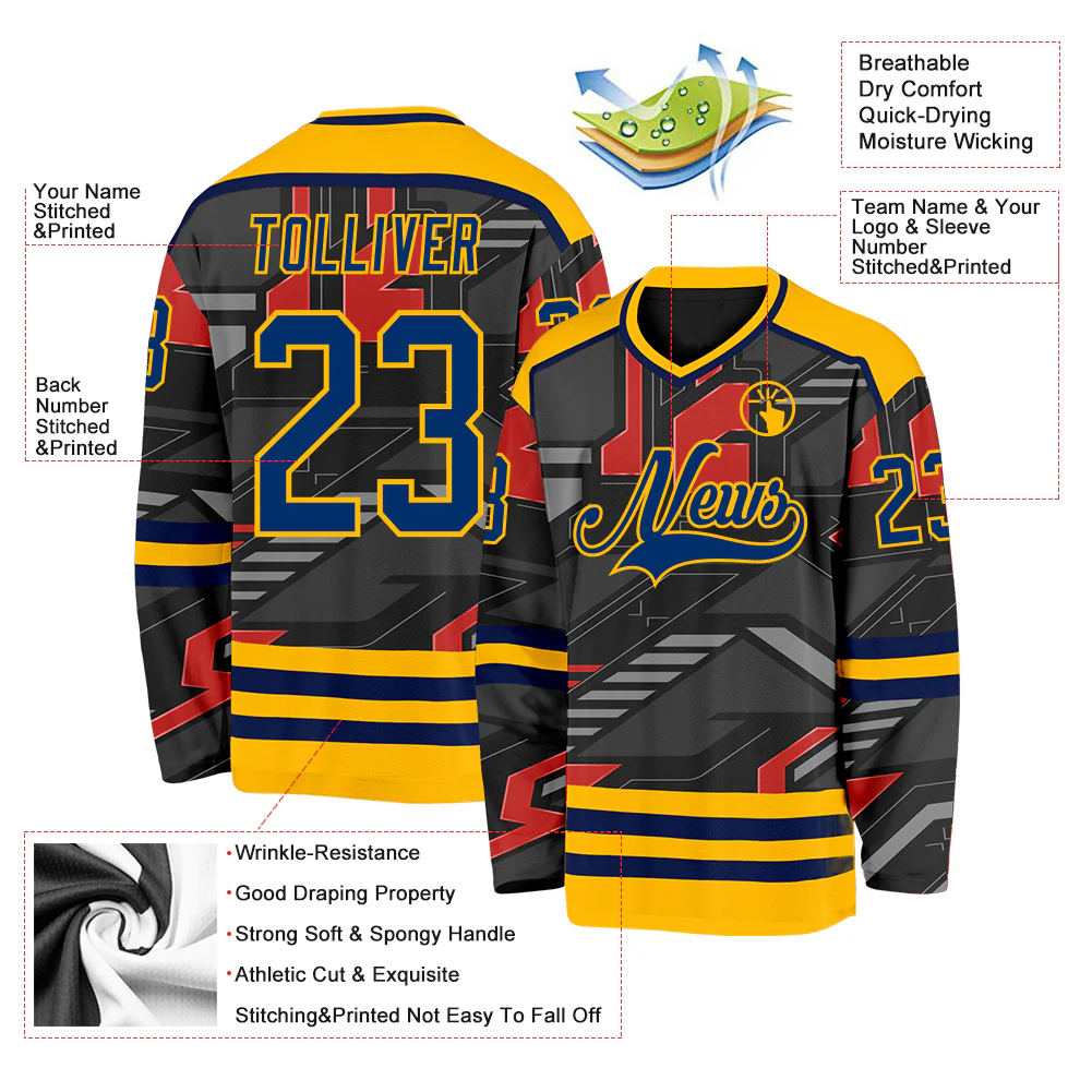 Custom Black Yellow Gray Royal Red-White 3D Pattern Cyber Mecha E-sport Hockey Jersey