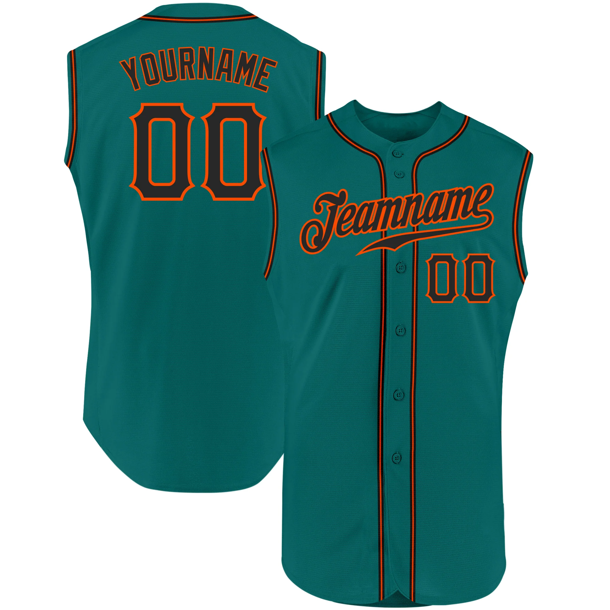 Custom Aqua Black-Orange Authentic Sleeveless Baseball Jersey