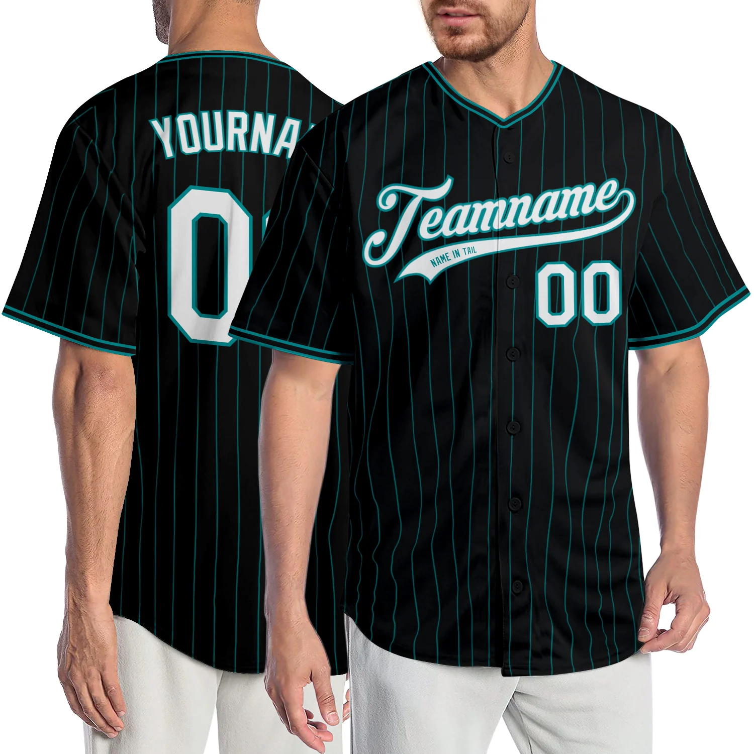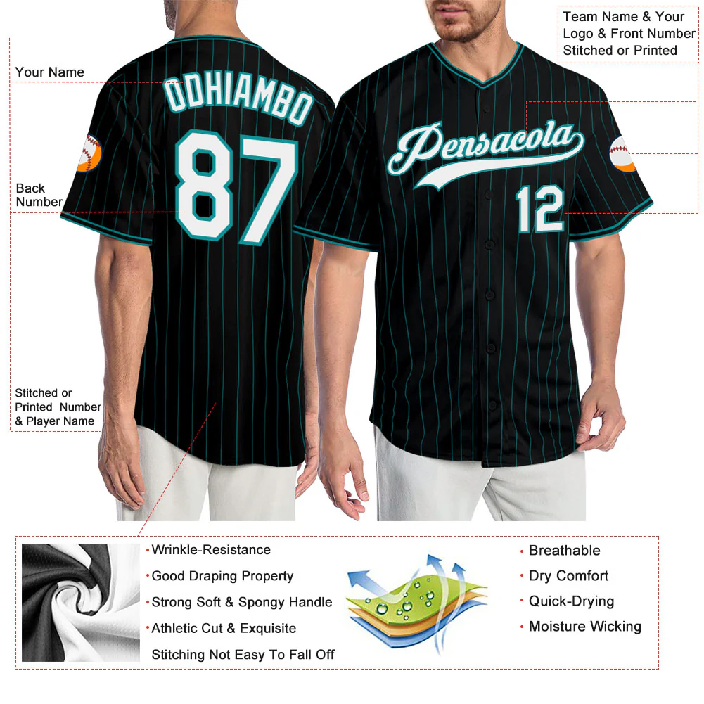 Custom Black Teal Pinstripe White-Teal Authentic Baseball Jersey