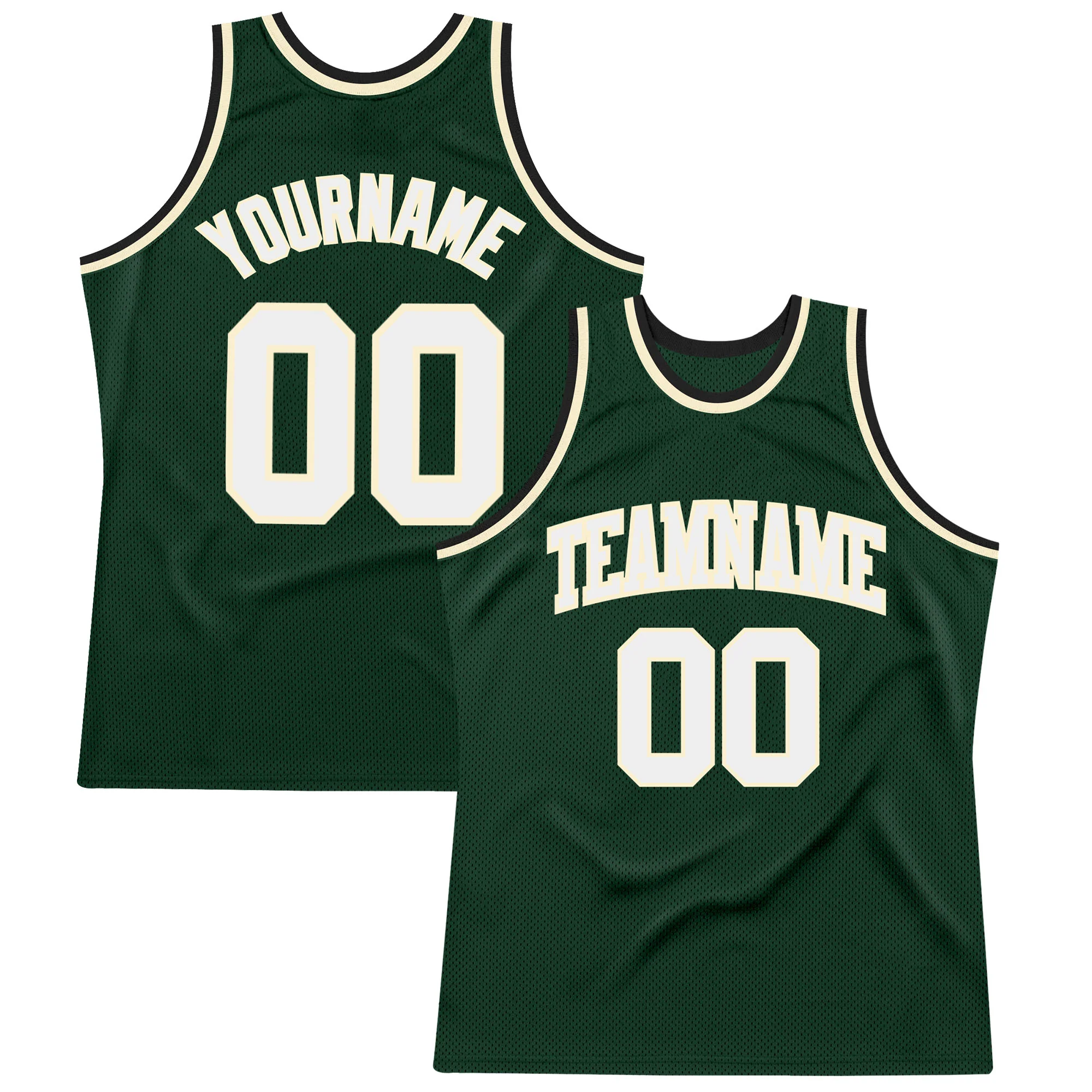 Custom Hunter Green White Cream-Black Authentic Throwback Basketball Jersey