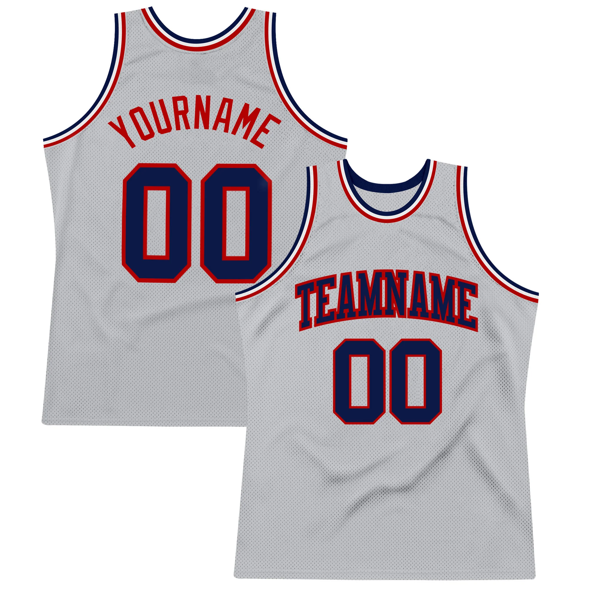 Custom Gray Navy-Red Authentic Throwback Basketball Jersey
