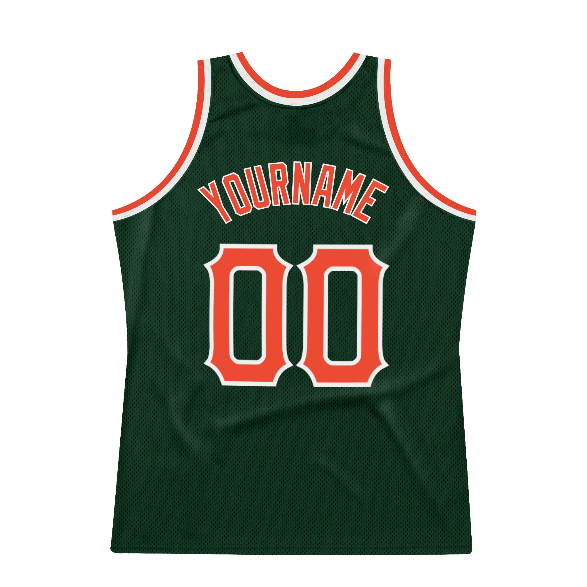 Custom Hunter Green Orange-White Authentic Throwback Basketball Jersey