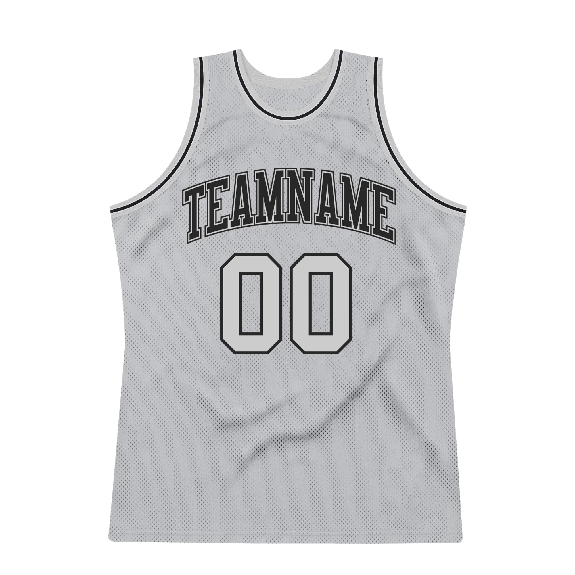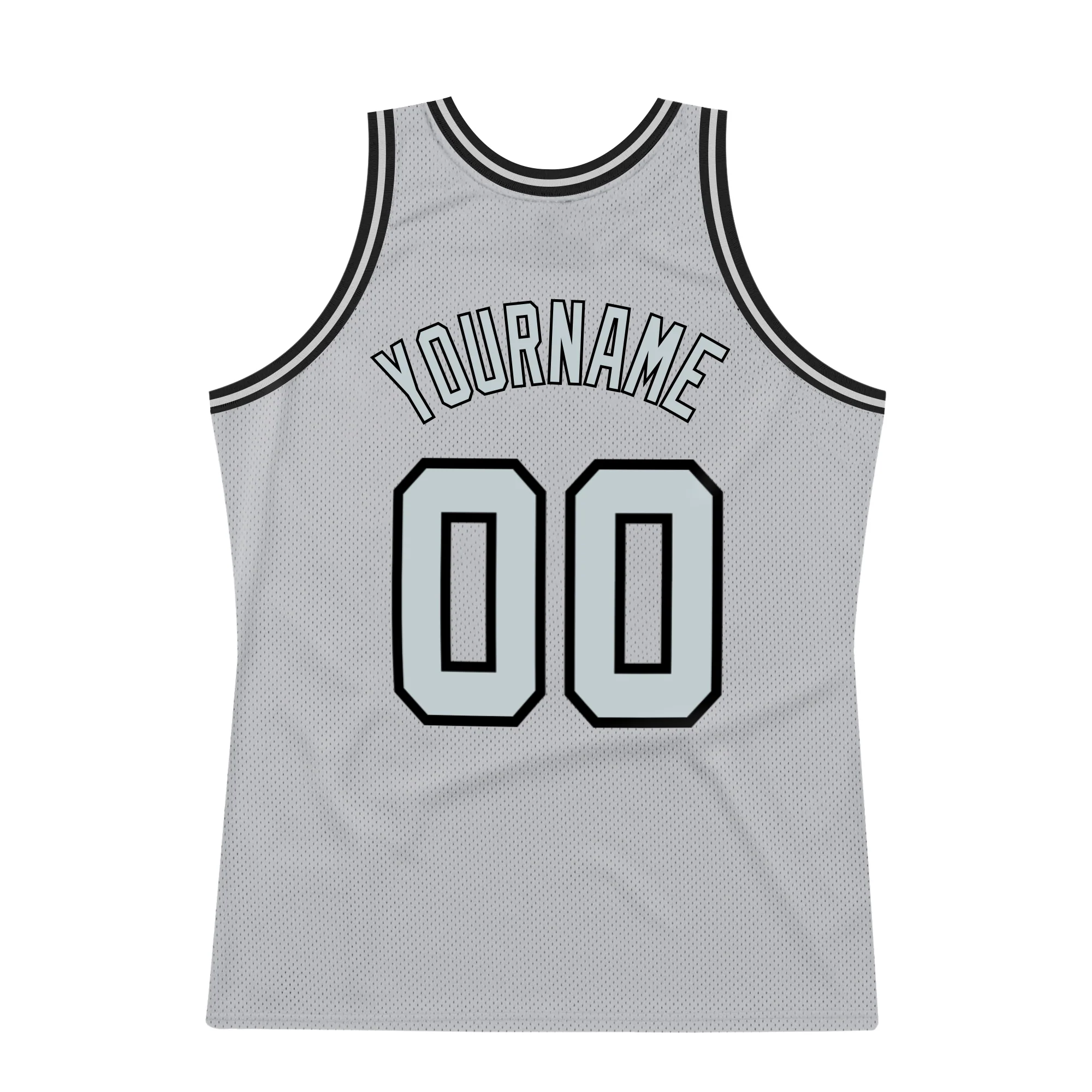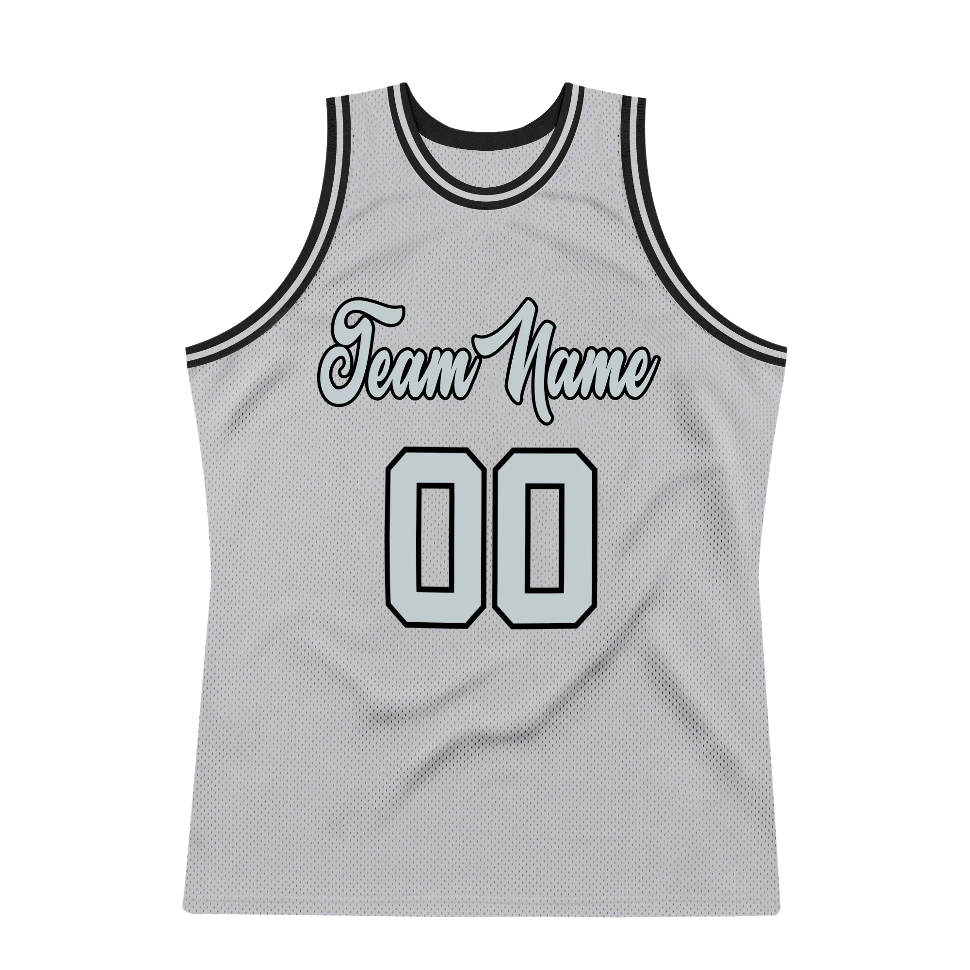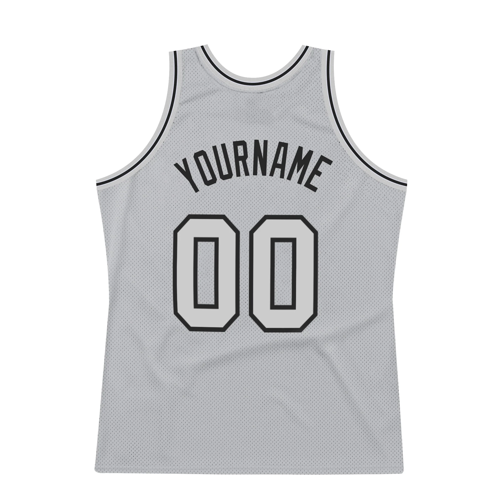 Custom Gray Silver-Black Authentic Throwback Basketball Jersey