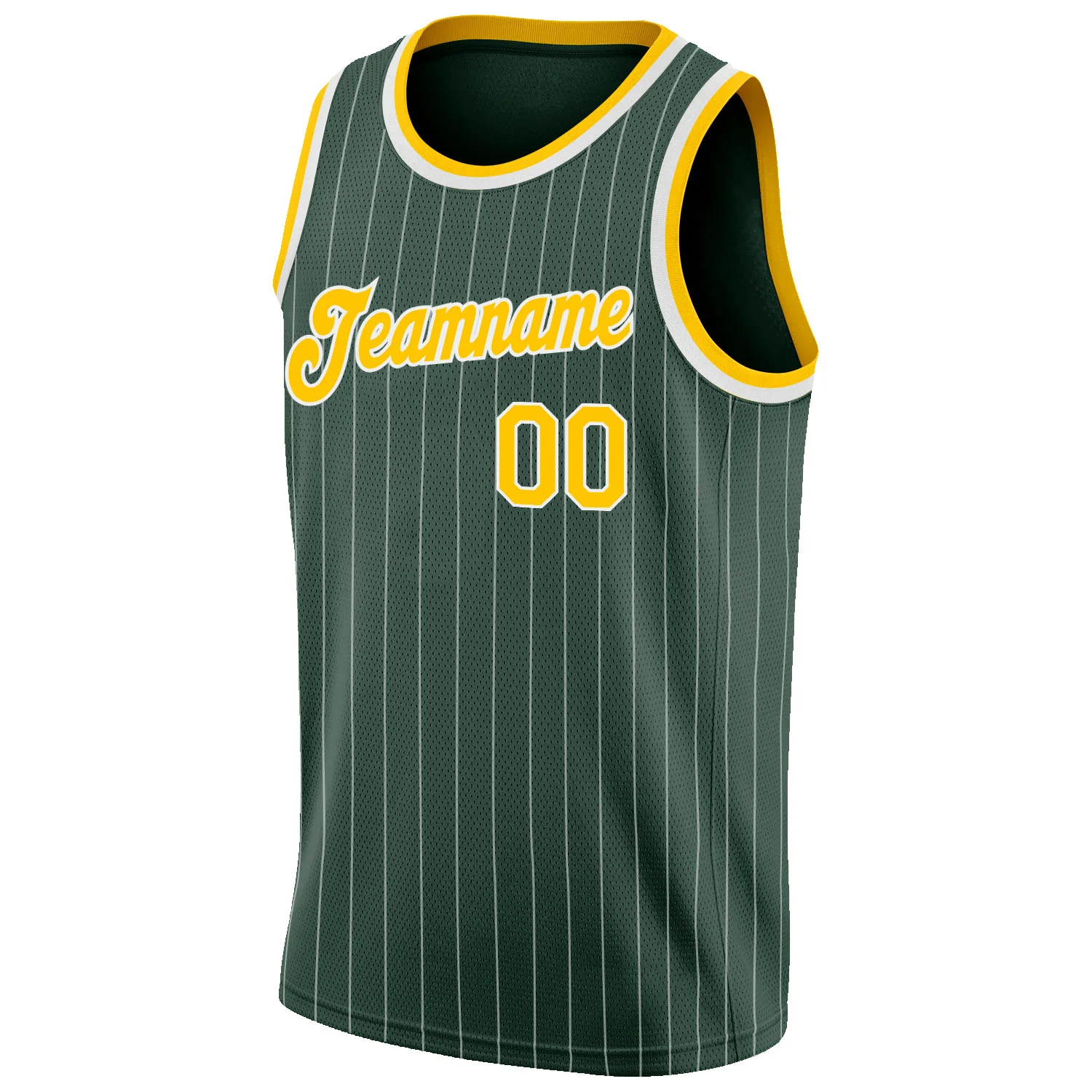 Custom Hunter Green White Pinstripe Gold-White Authentic Basketball Jersey