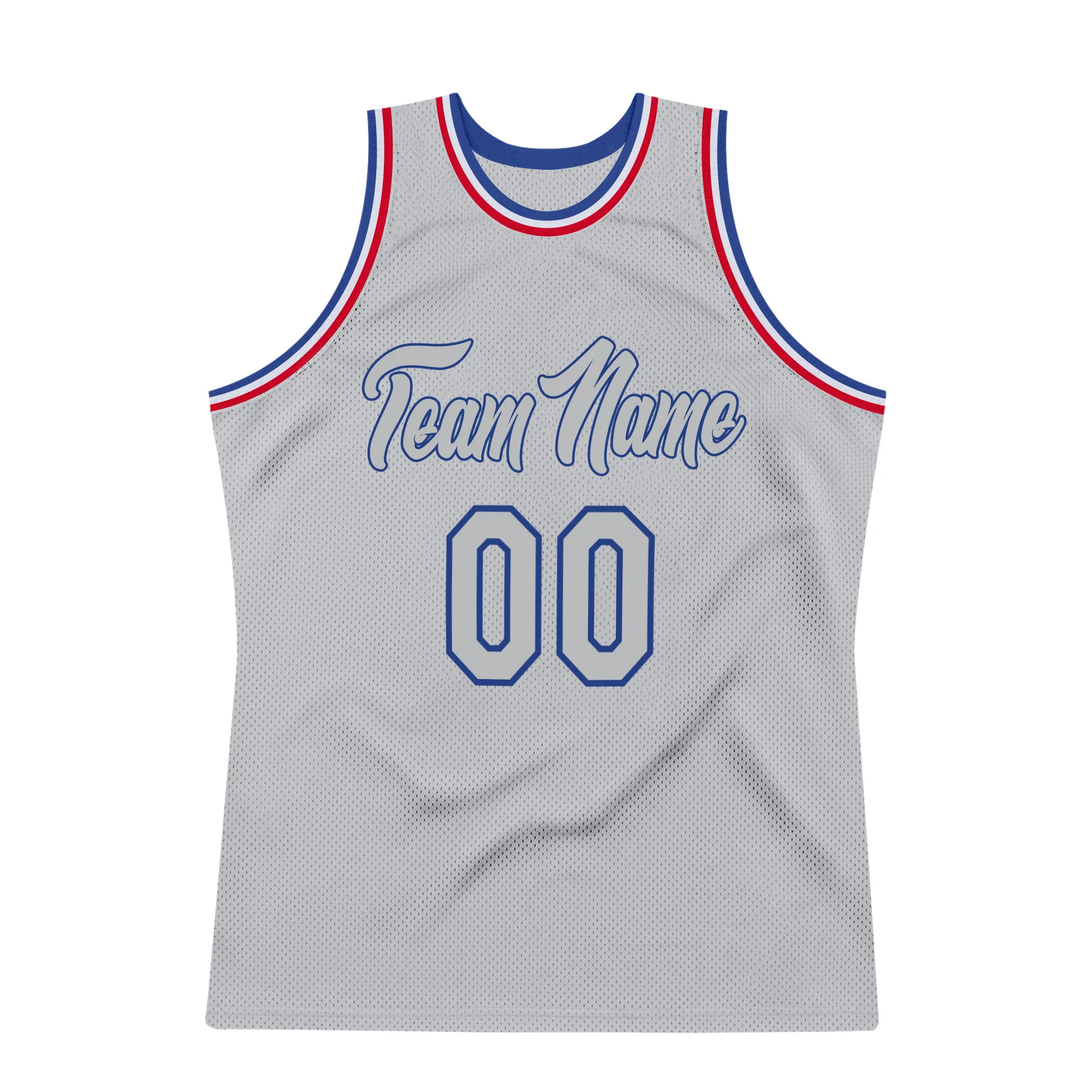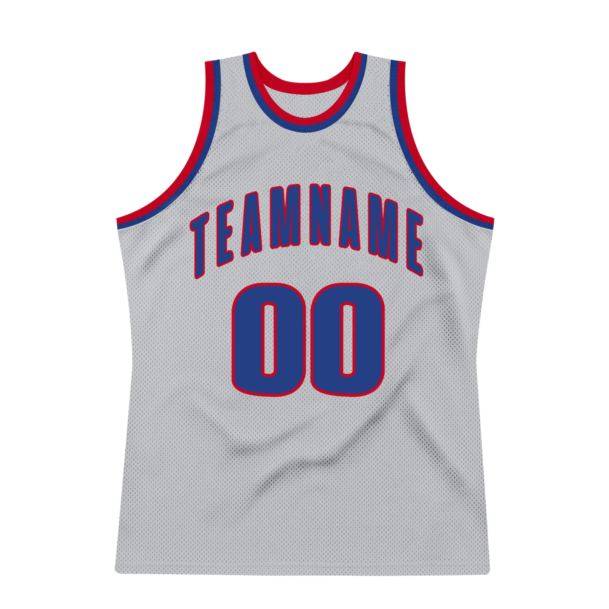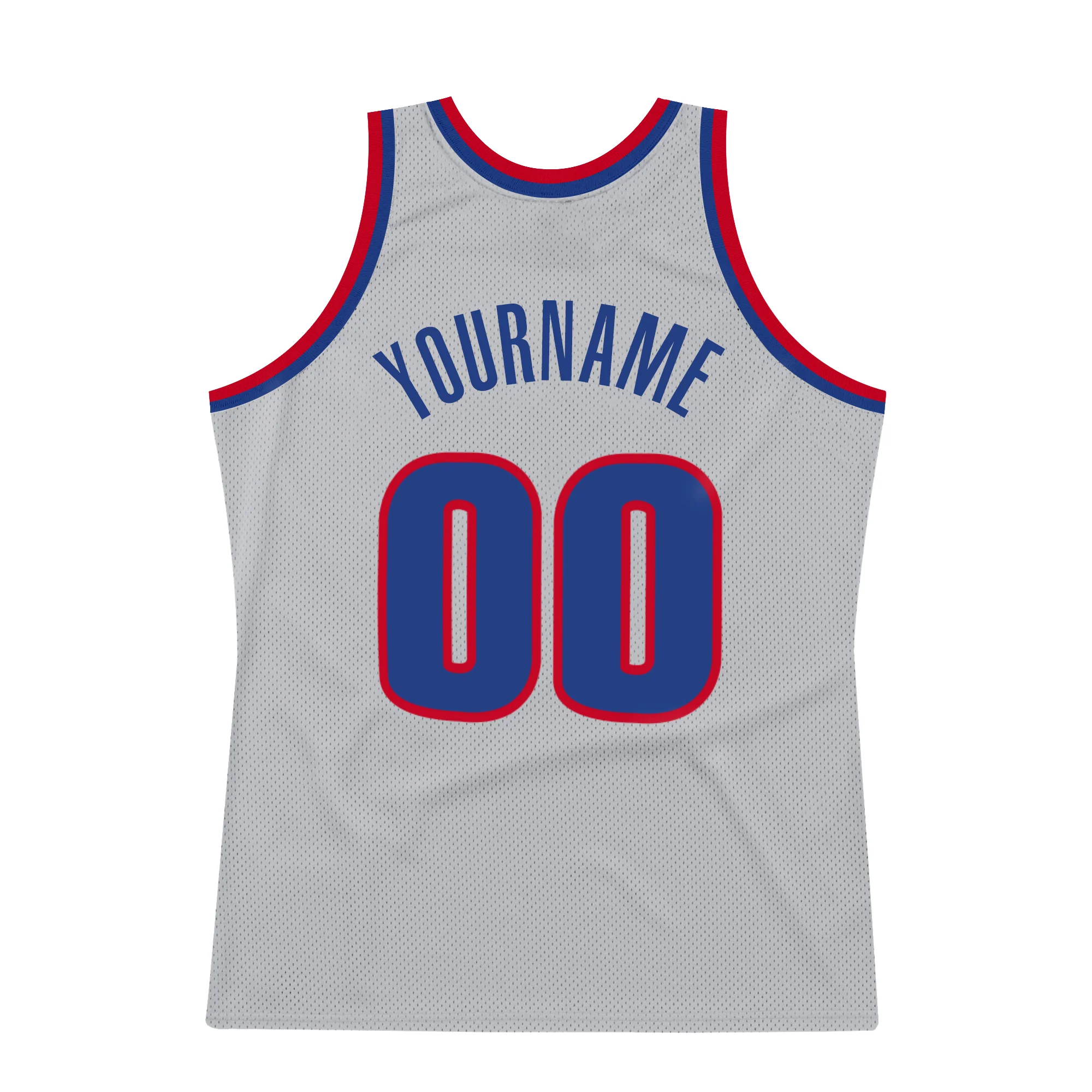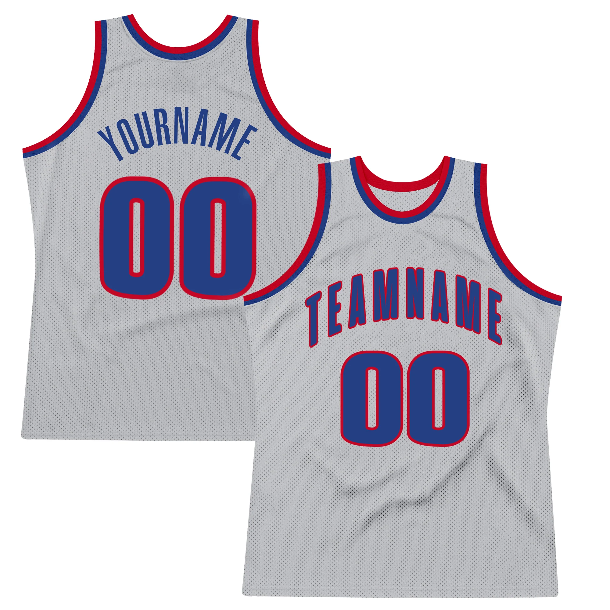 Custom Gray Royal-Red Authentic Throwback Basketball Jersey