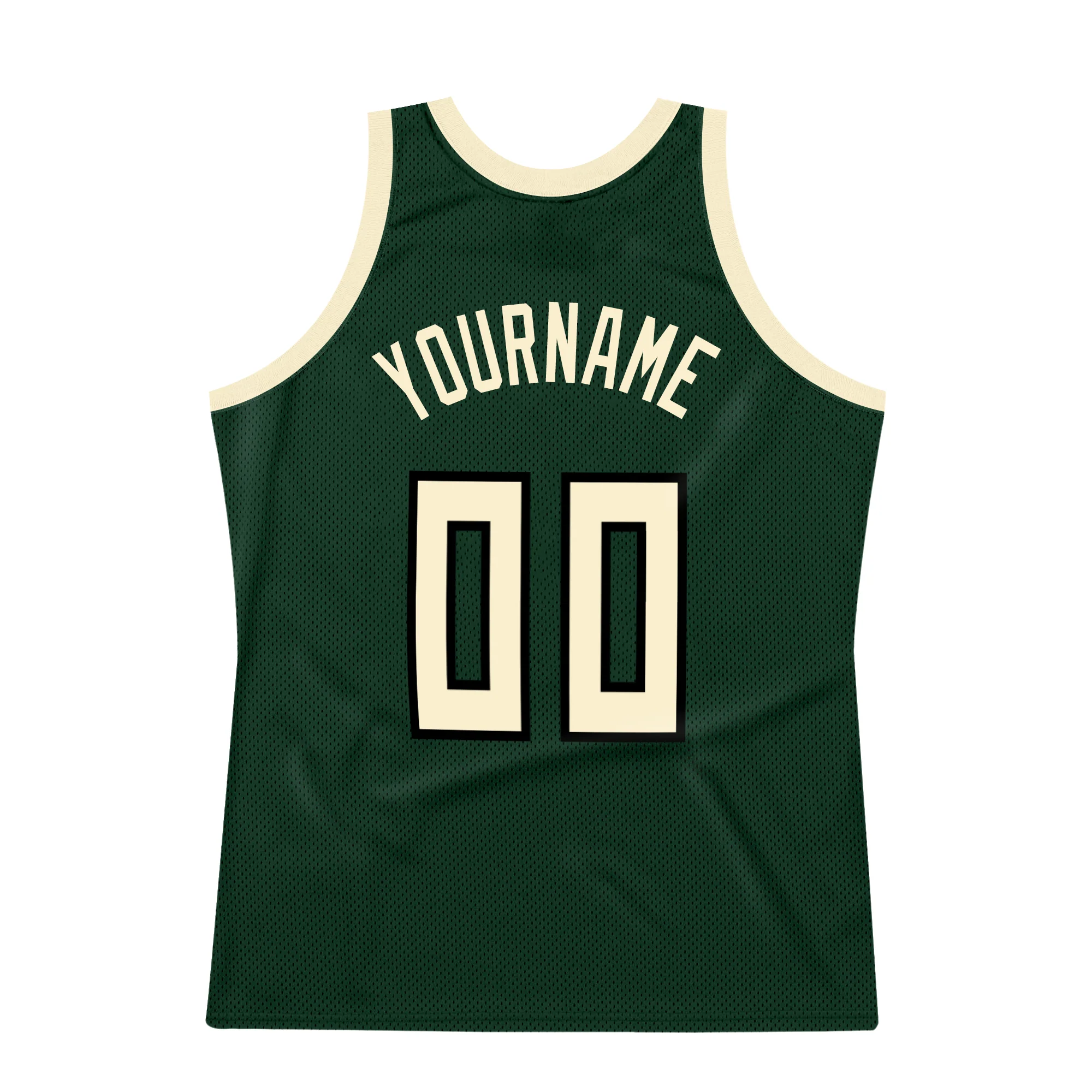 Custom Hunter Green Cream-Black Authentic Throwback Basketball Jersey