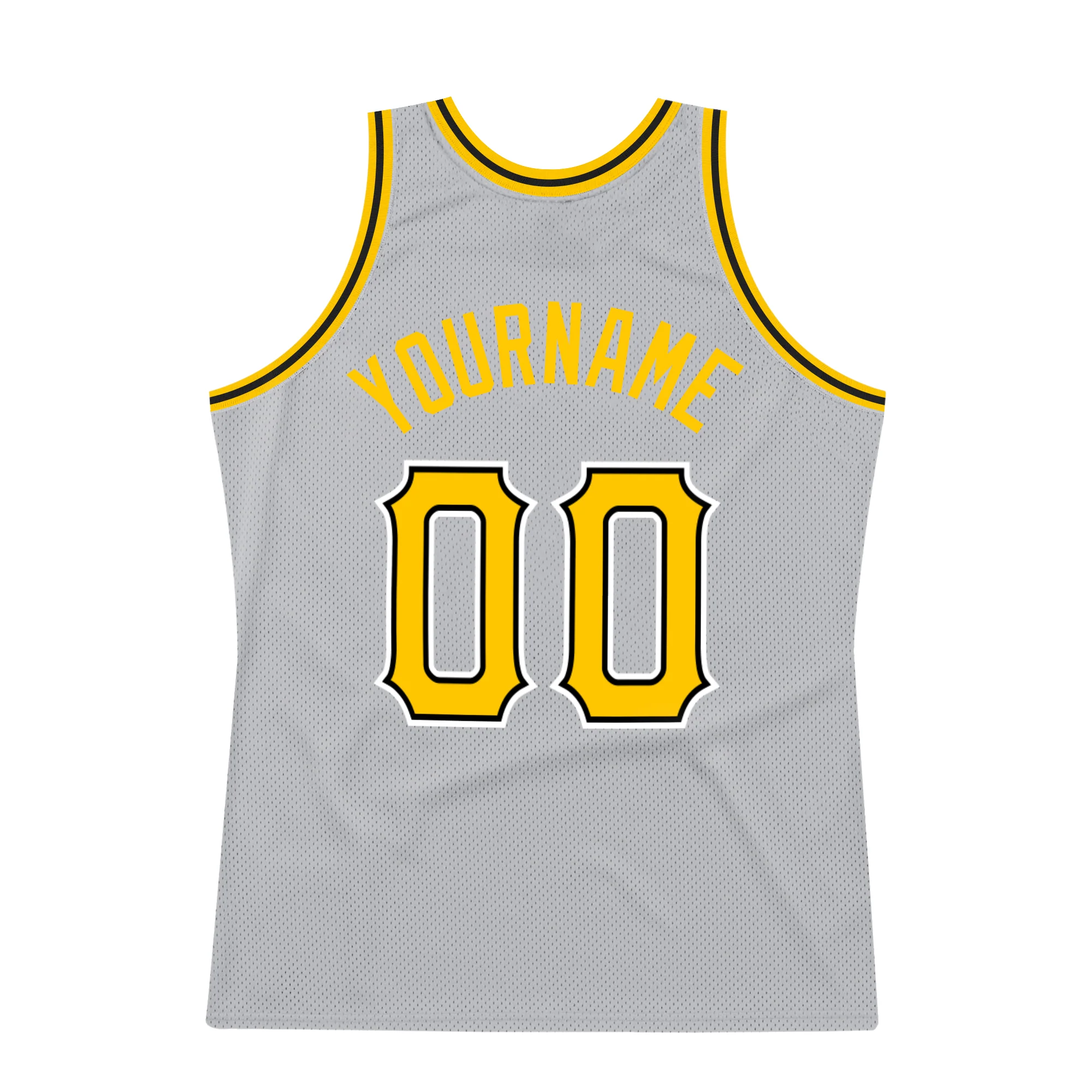 Custom Gray Gold-Black Authentic Throwback Basketball Jersey