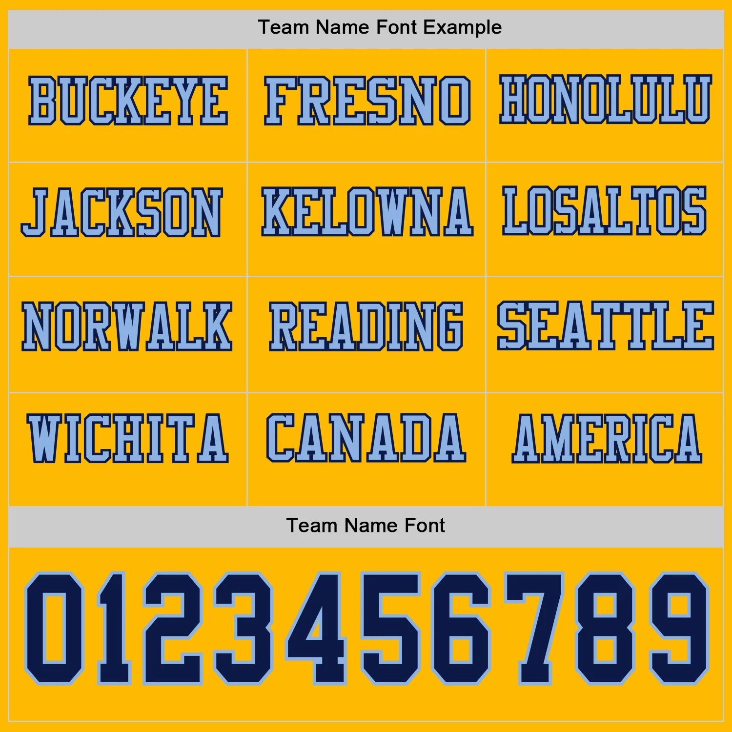 Custom Gold Navy-Light Blue Long Sleeve Authentic Football Jersey