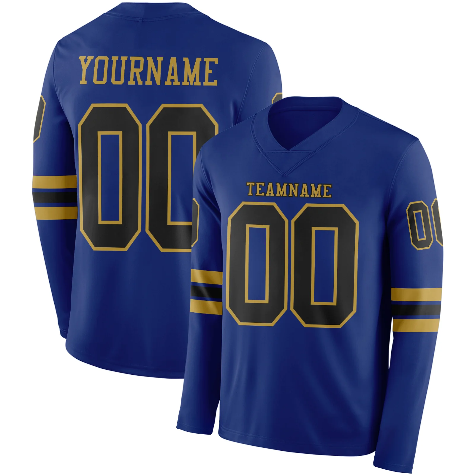 Custom Royal Black-Old Gold Long Sleeve Authentic Football Jersey