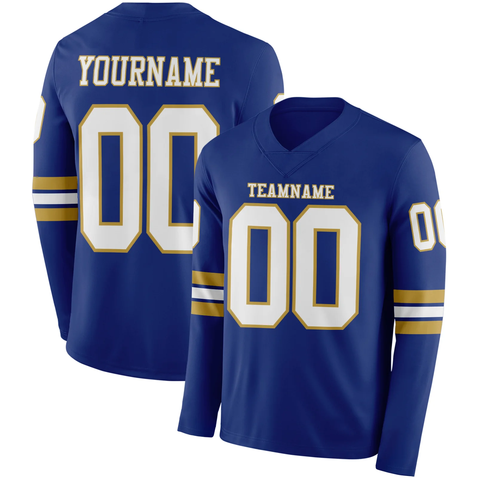 Custom Royal Gold-White Long Sleeve Authentic Football Jersey