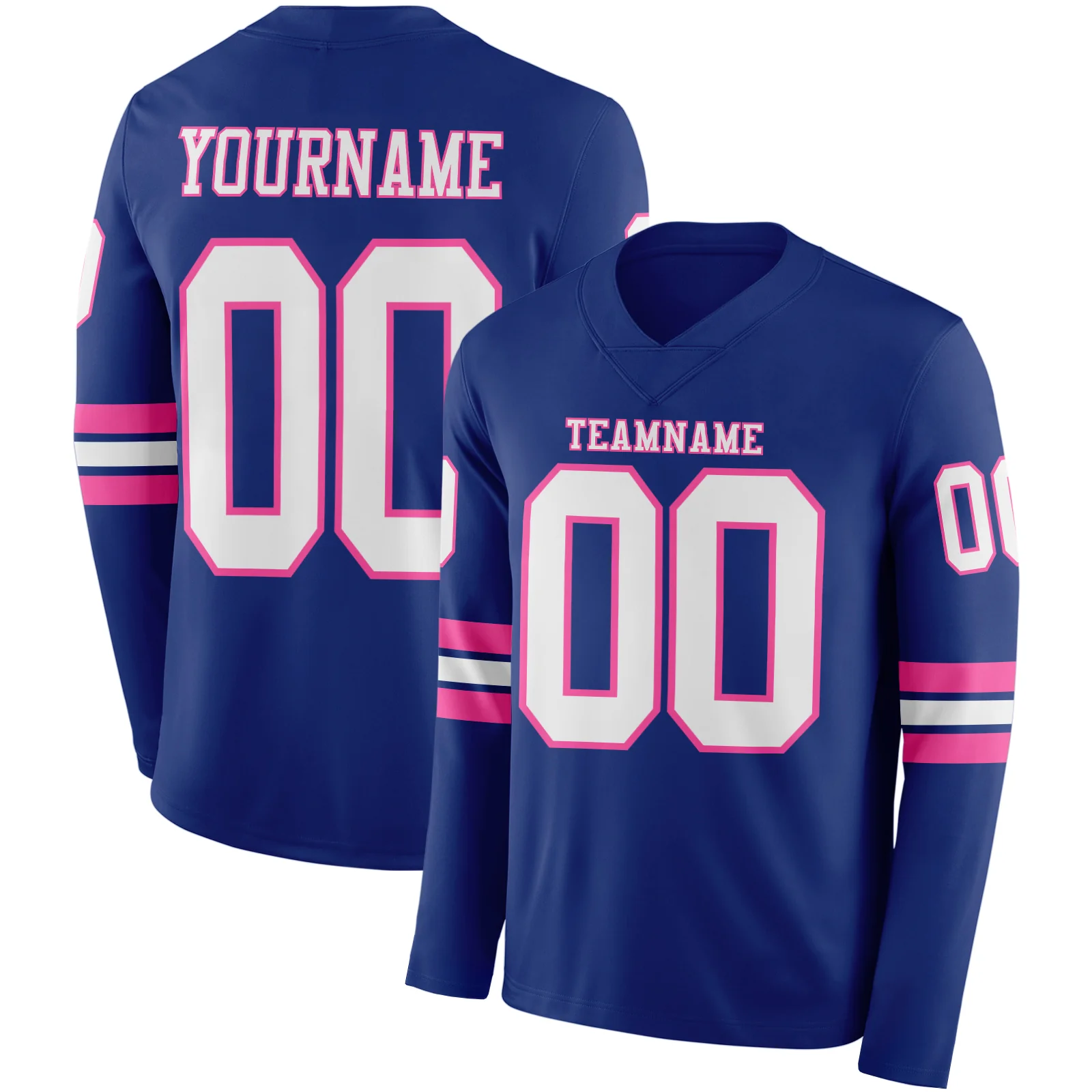 Custom Royal White-Pink Long Sleeve Authentic Football Jersey