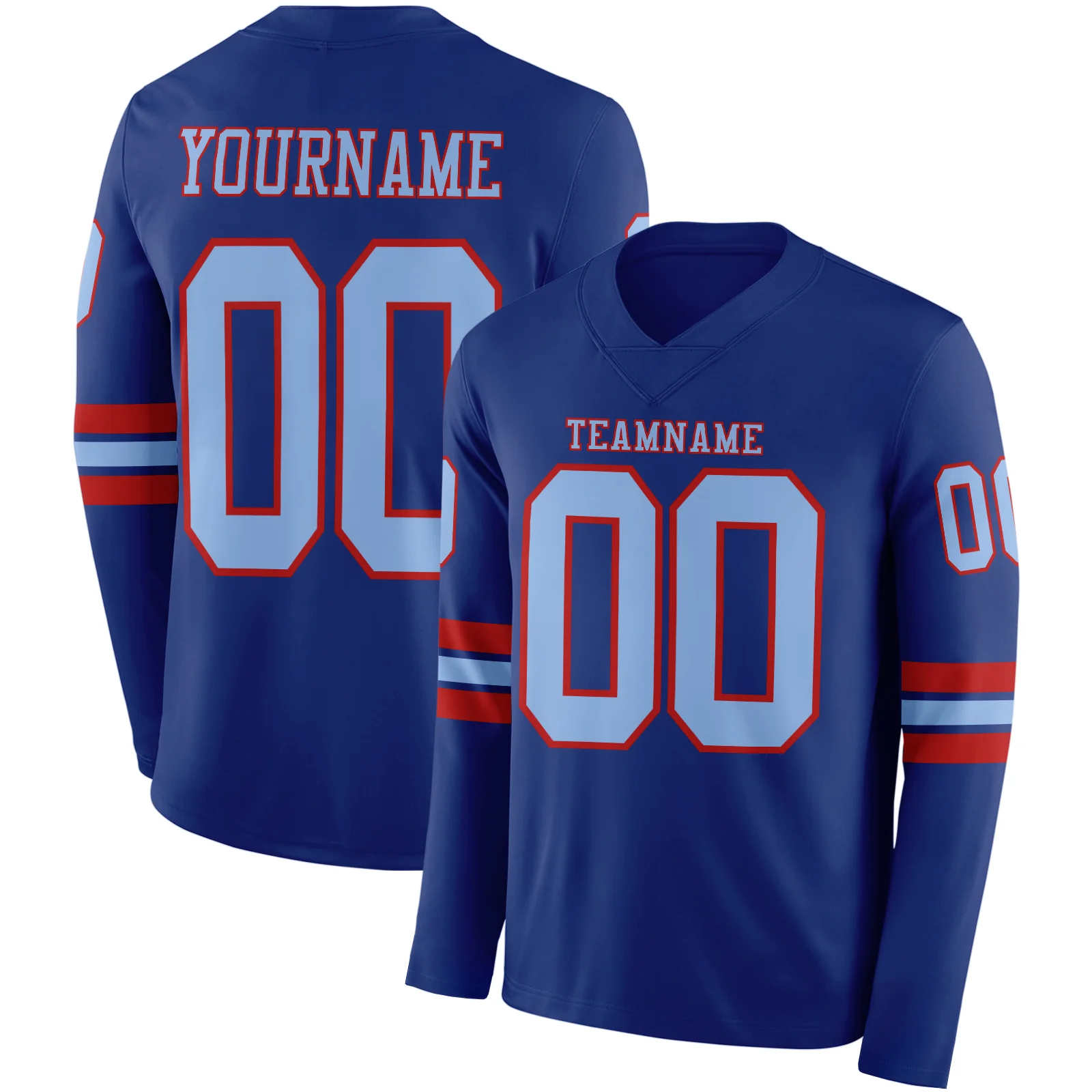 Custom Royal Light Blue-Red Long Sleeve Authentic Football Jersey