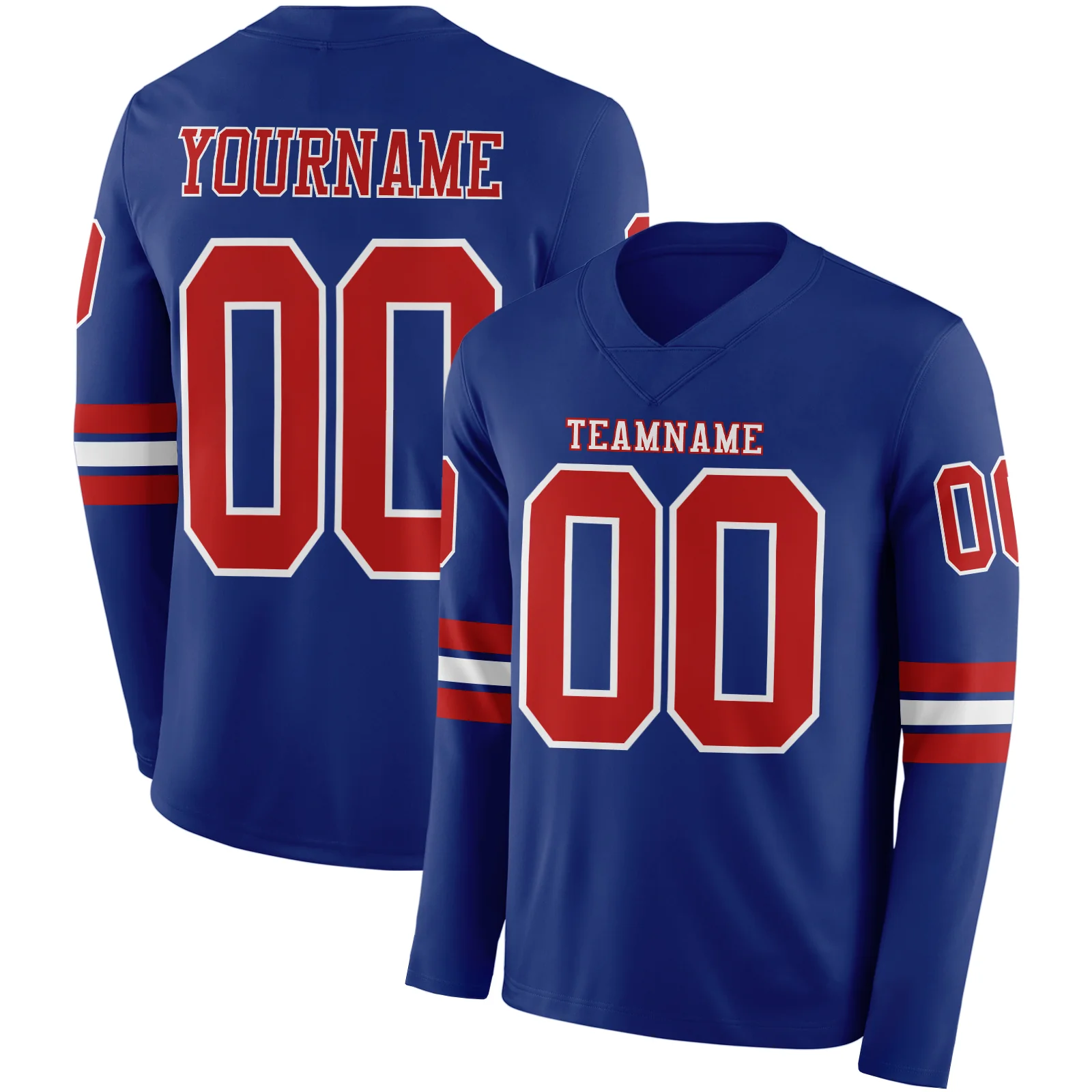 Custom Royal Red-White Long Sleeve Authentic Football Jersey