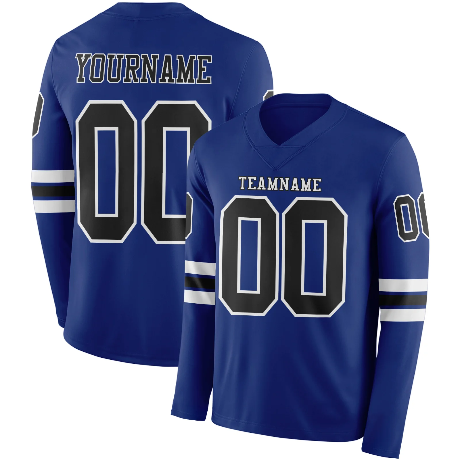 Custom Royal Black-White Long Sleeve Authentic Football Jersey