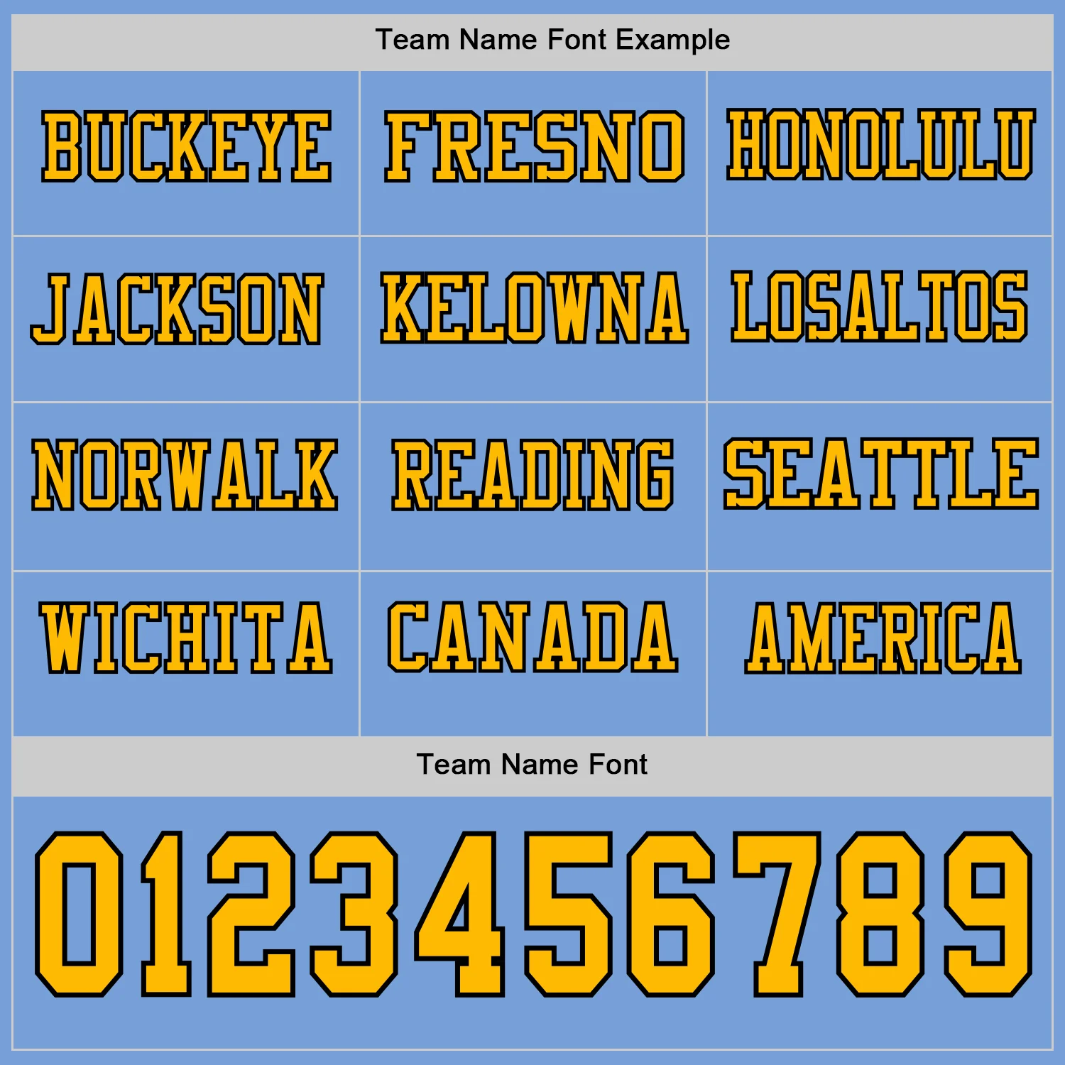 Custom Light Blue Gold-Black Long Sleeve Authentic Football Jersey