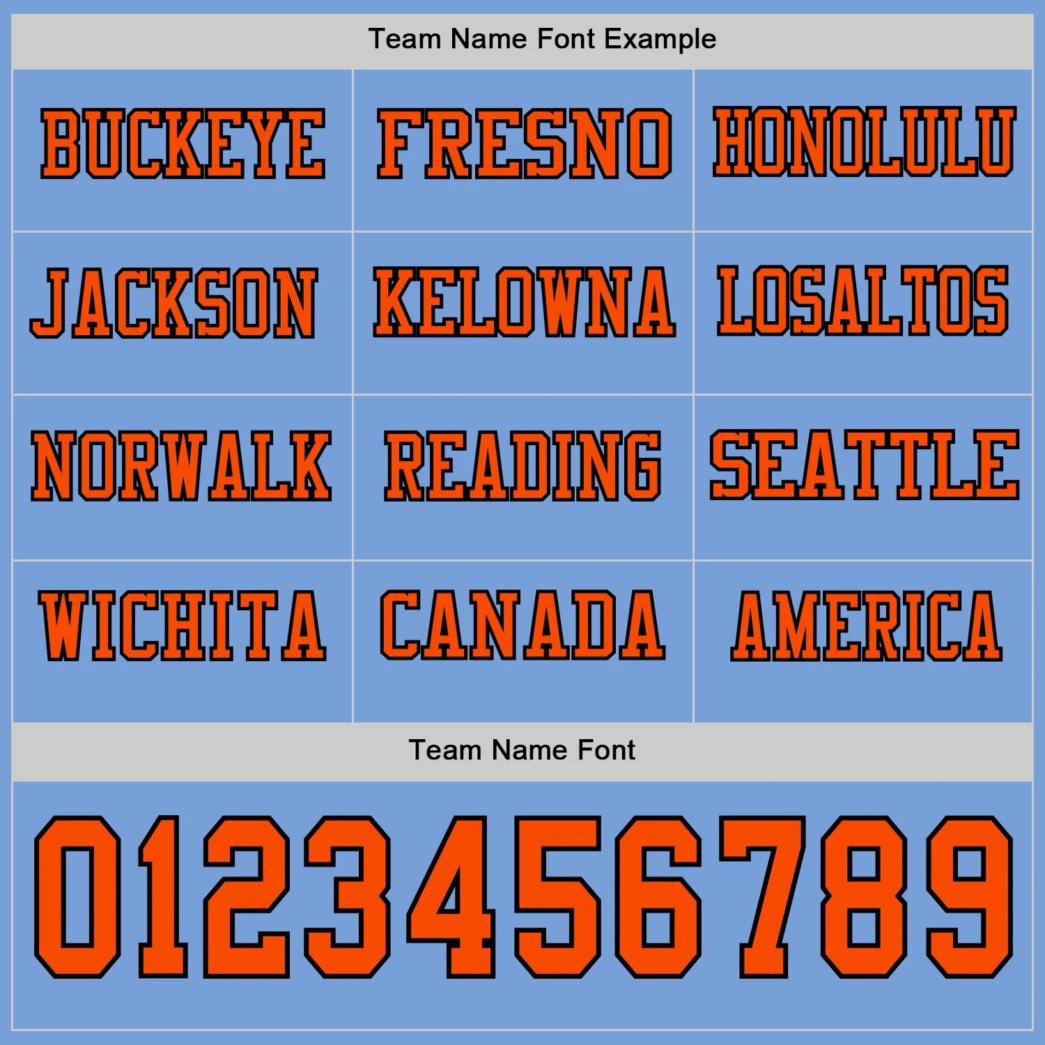 Custom Light Blue Orange-Black Long Sleeve Authentic Football Jersey