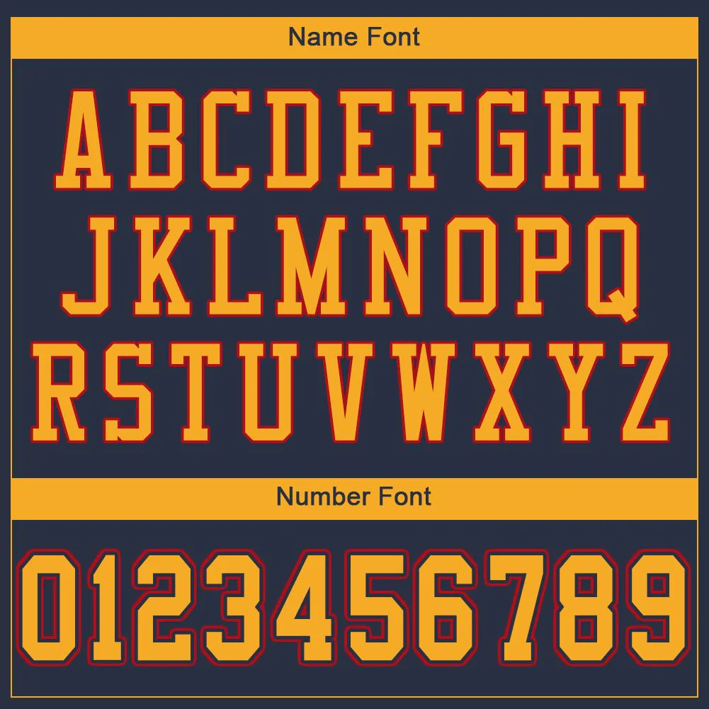 Custom Navy Gold-Red Mesh Authentic Football Jersey