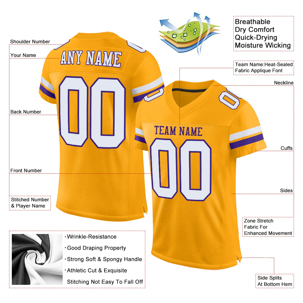 Custom Gold Purple-White Mesh Authentic Football Jersey