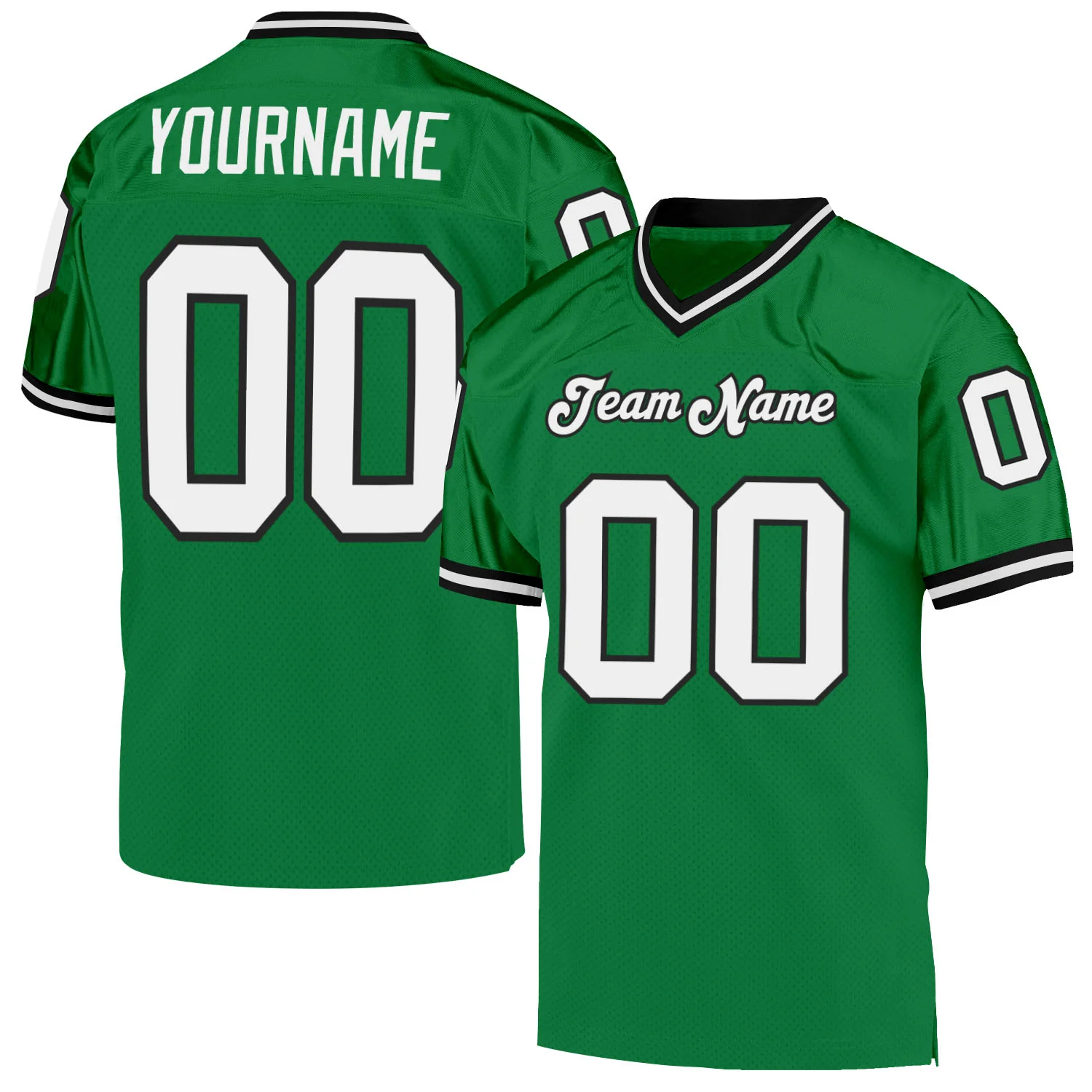 Custom Grass Green White-Black Mesh Authentic Throwback Football Jersey