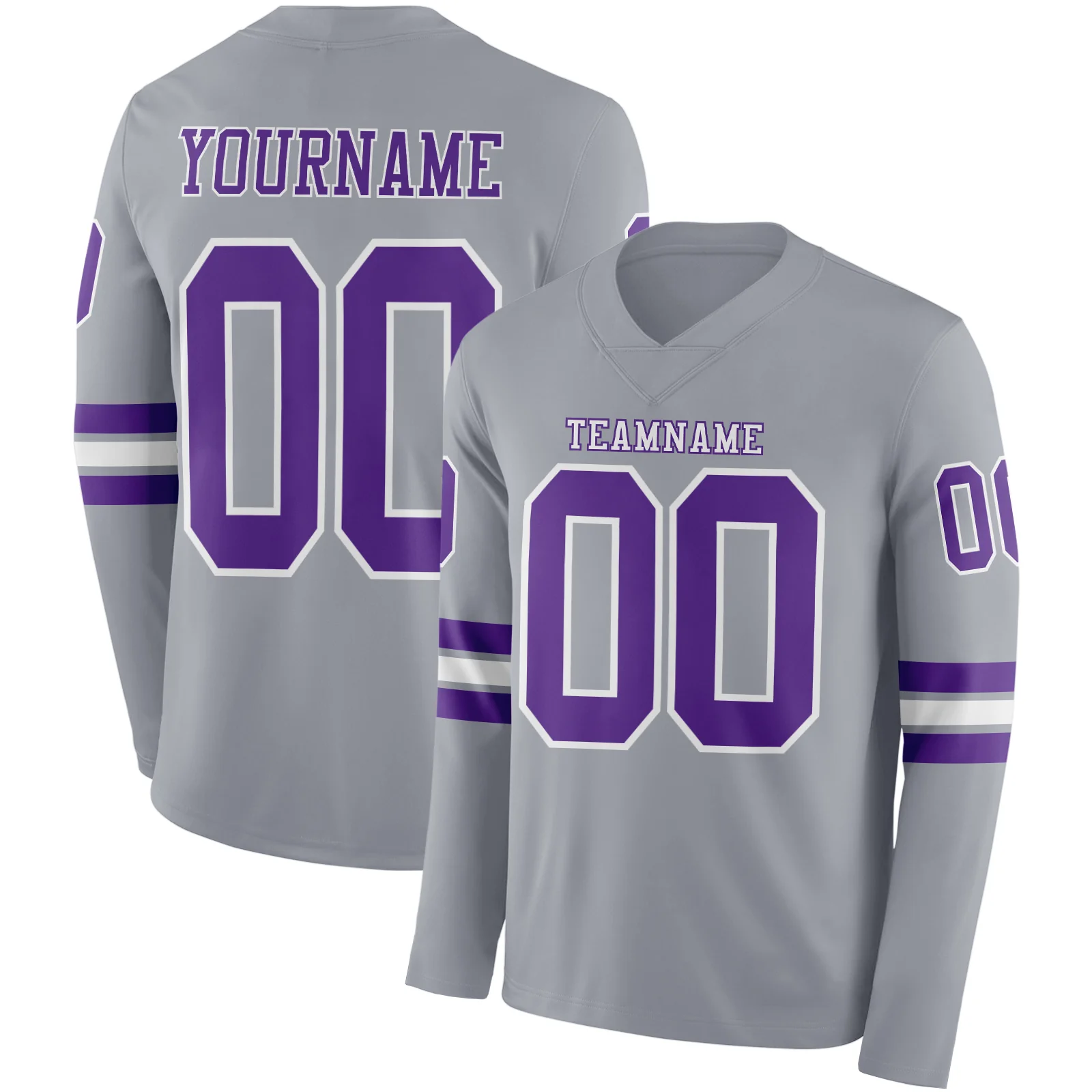 Custom Gray Purple-White Long Sleeve Authentic Football Jersey