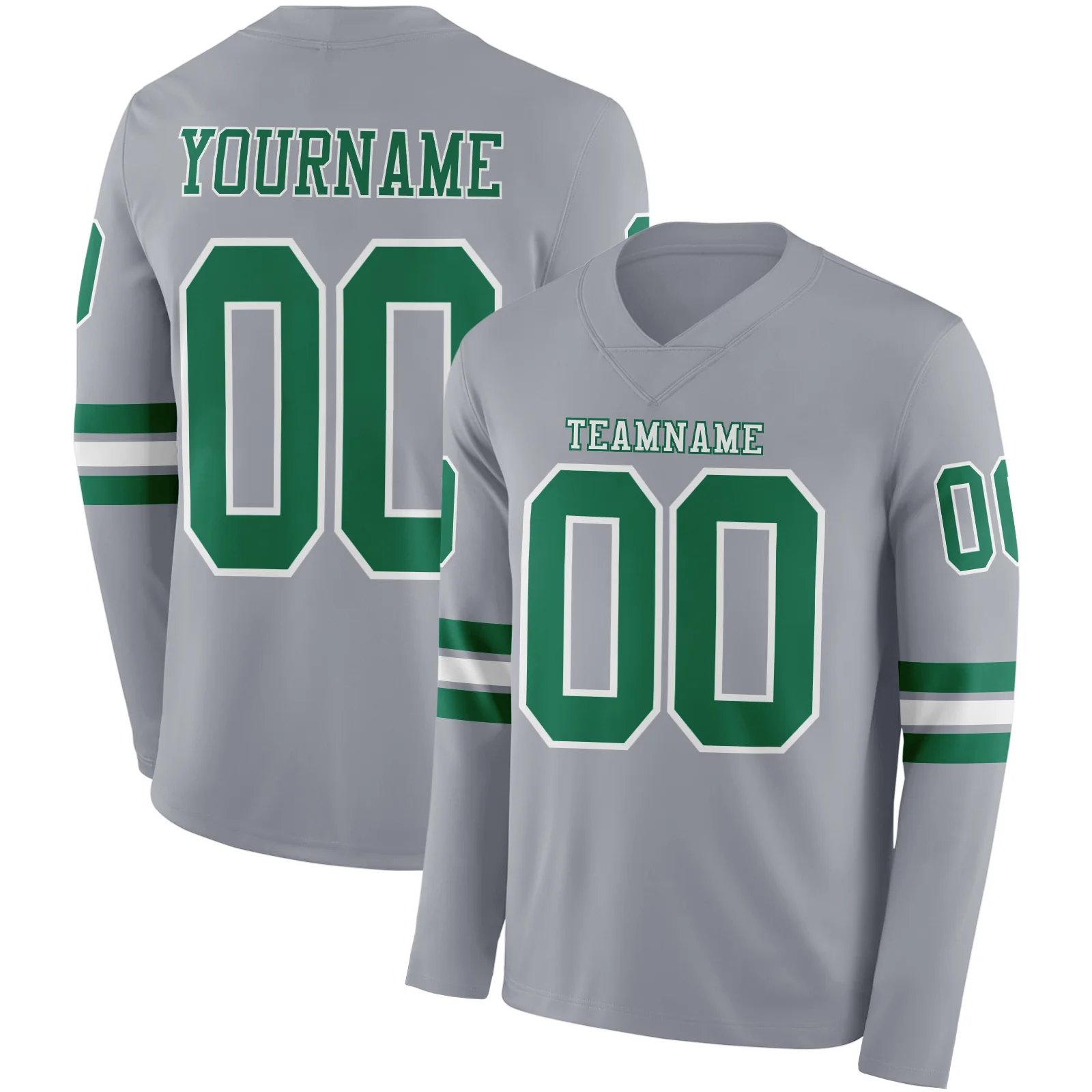 Custom Gray Kelly Green-White Long Sleeve Authentic Football Jersey