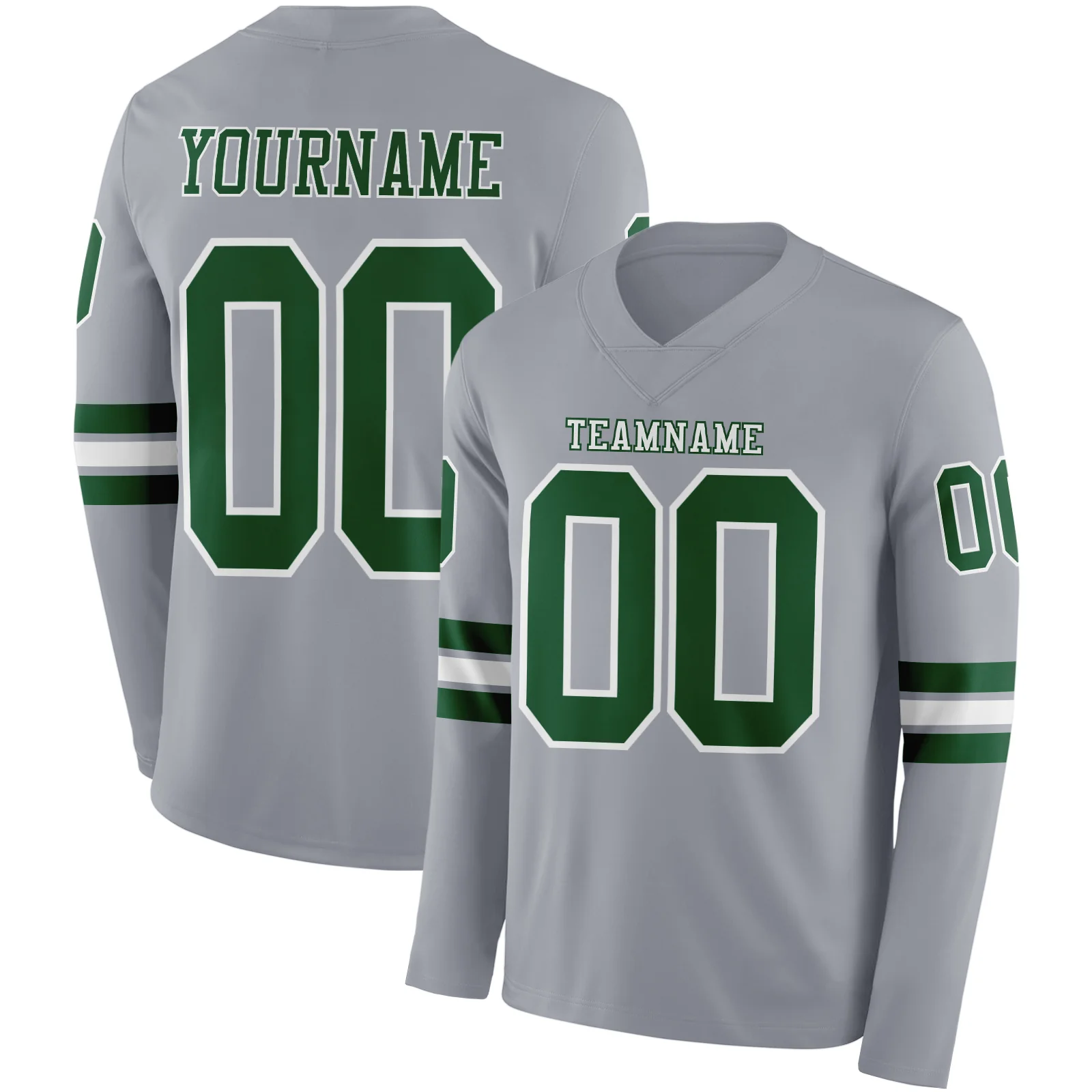 Custom Gray Green-White Long Sleeve Authentic Football Jersey