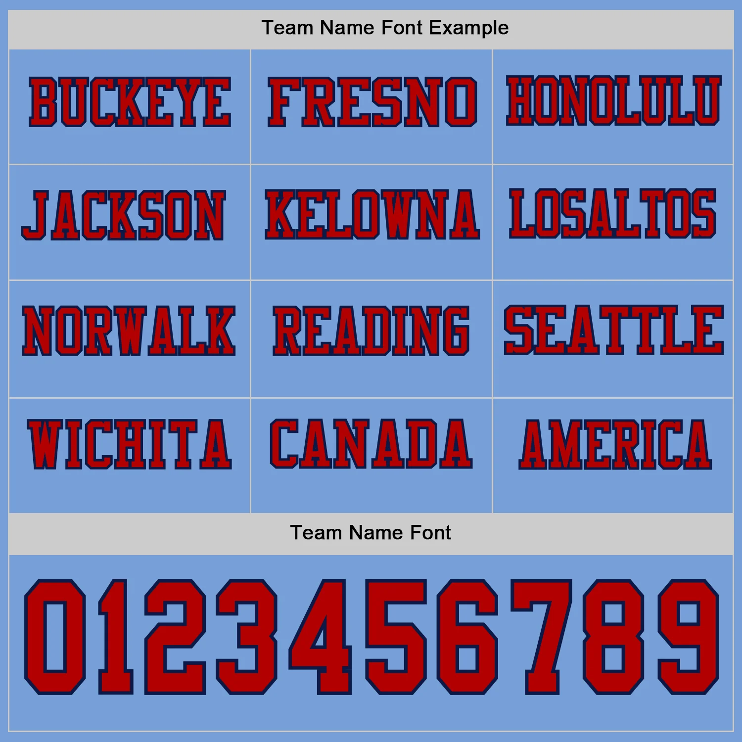 Custom Light Blue Red-Navy Long Sleeve Authentic Football Jersey