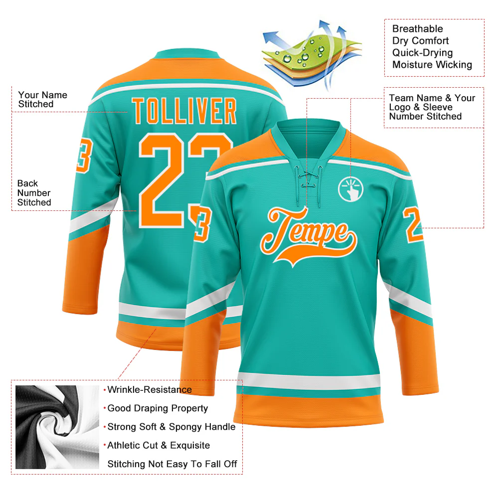 Custom Aqua Bay Orange-White Hockey Lace Neck Jersey