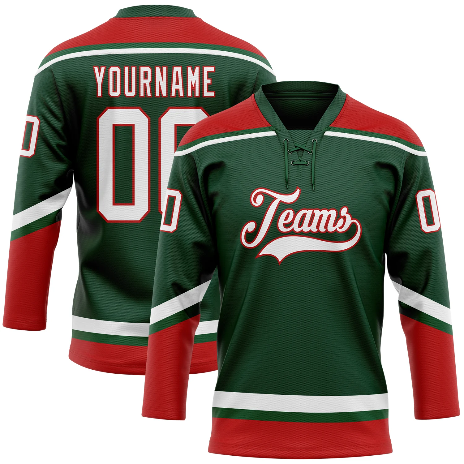 Custom Green White-Red Hockey Lace Neck Jersey