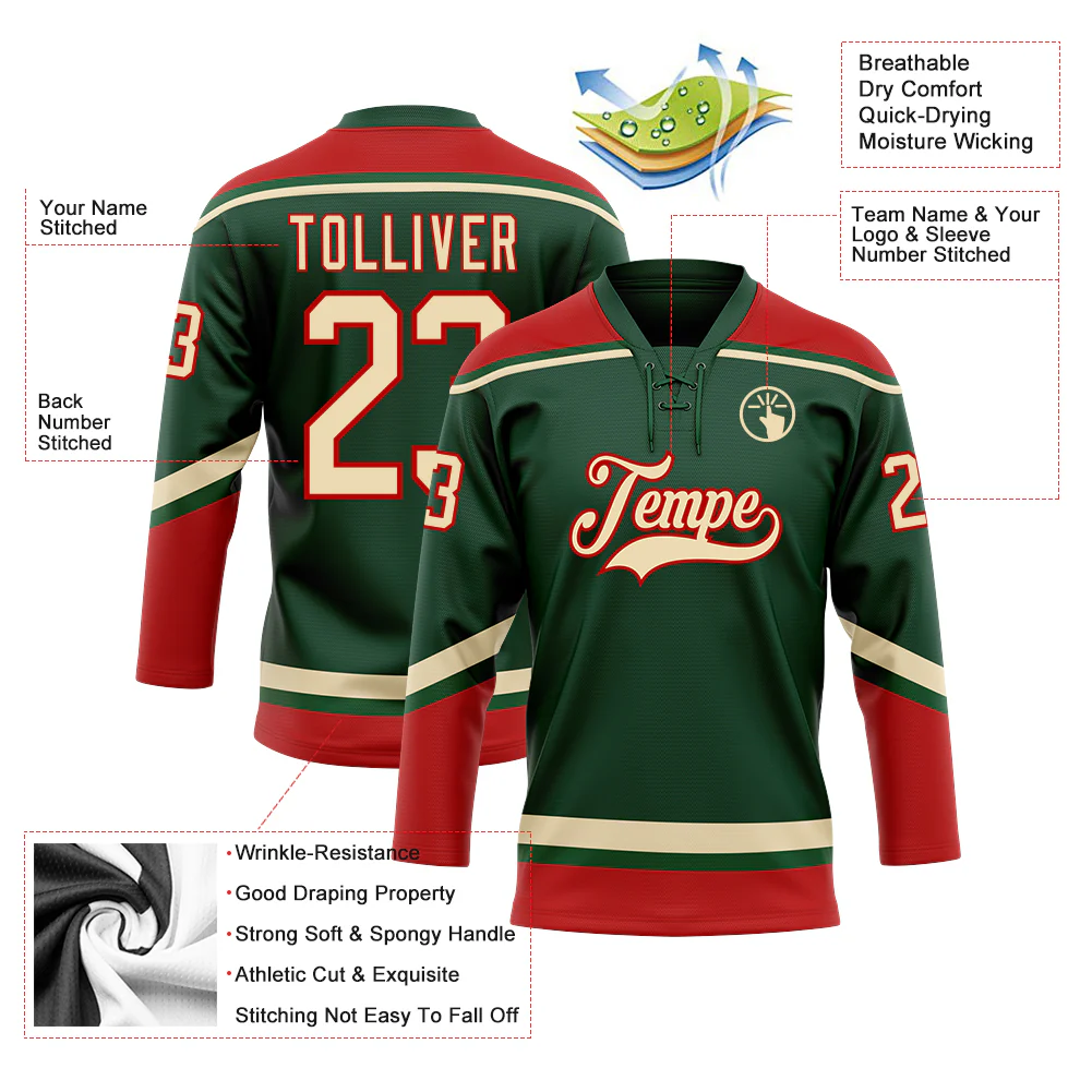 Custom Green City Cream-Red Hockey Lace Neck Jersey