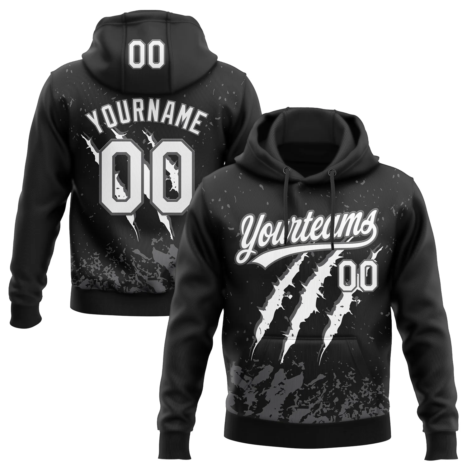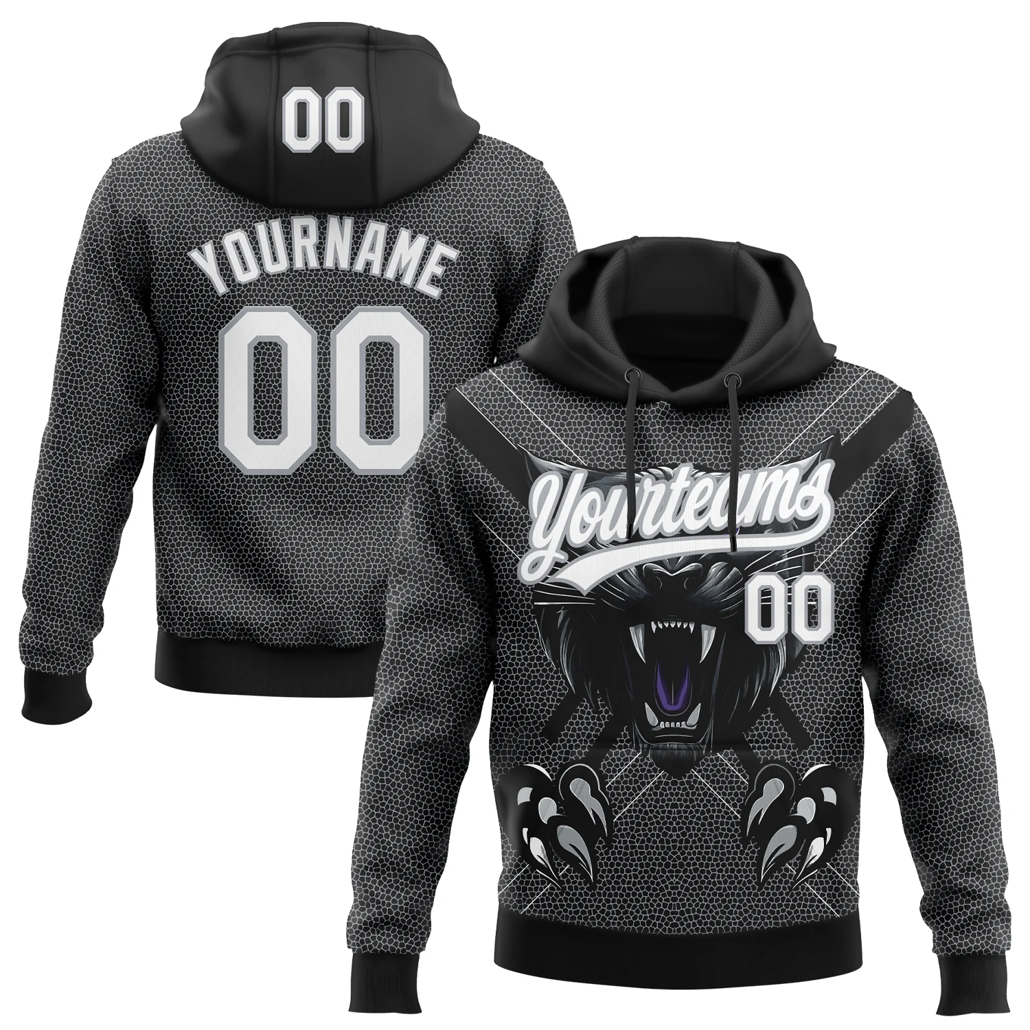 Custom Stitched Black White-Steel Gray 3D Pattern Design Leopardo Scratch Sports Pullover Sweatshirt Hoodie
