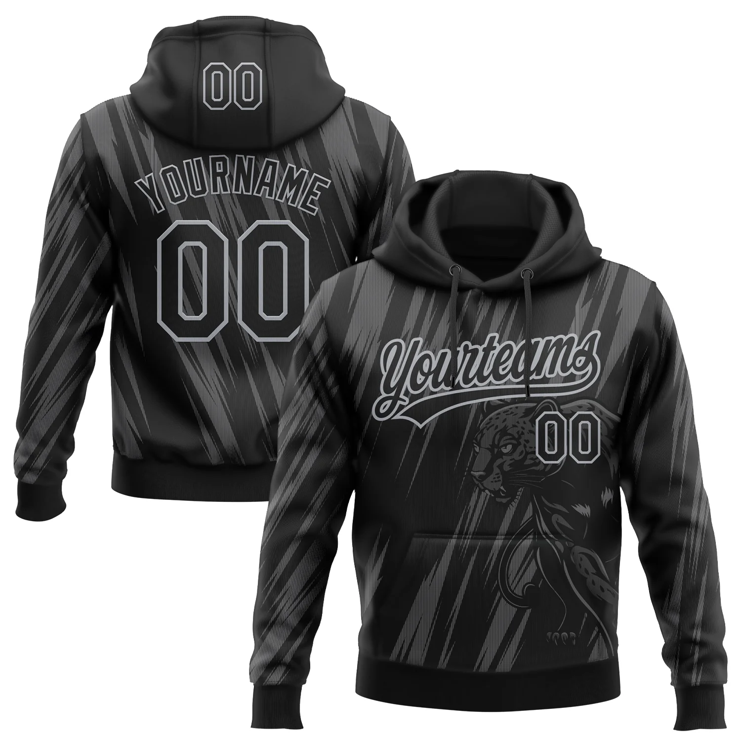 Custom Stitched Steel Gray Black-Gray 3D Pattern Design Leopardo Sports Pullover Sweatshirt Hoodie