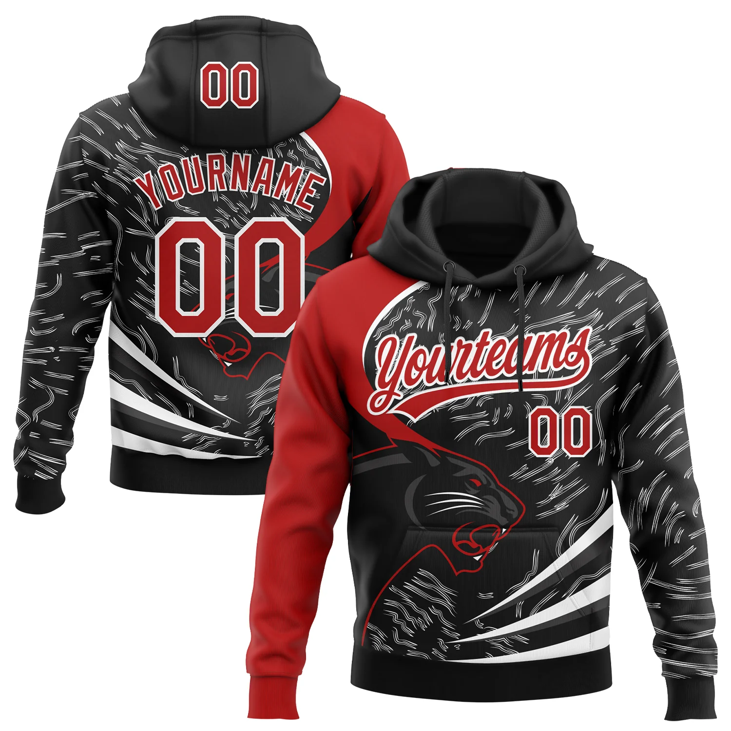 Custom Stitched Black Red-White 3D Pattern Design Leopardo Sports Pullover Sweatshirt Hoodie