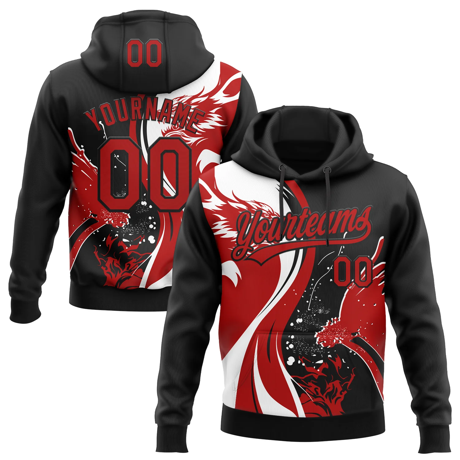 Custom Stitched Black White-Red 3D Pattern Design Wolf Sports Pullover Sweatshirt Hoodie