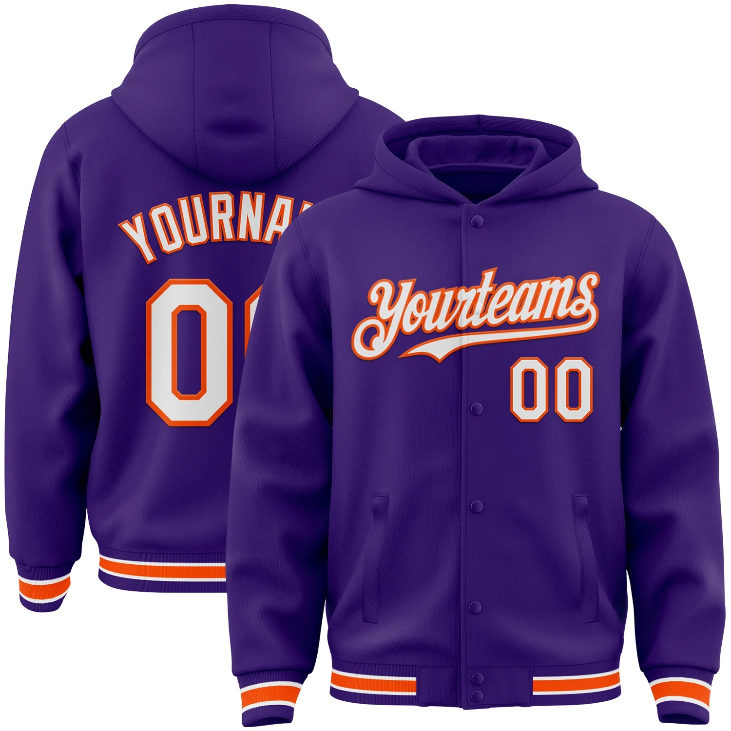Custom Purple White-Orange Bomber Full-Snap Varsity Letterman Hoodie Jacket