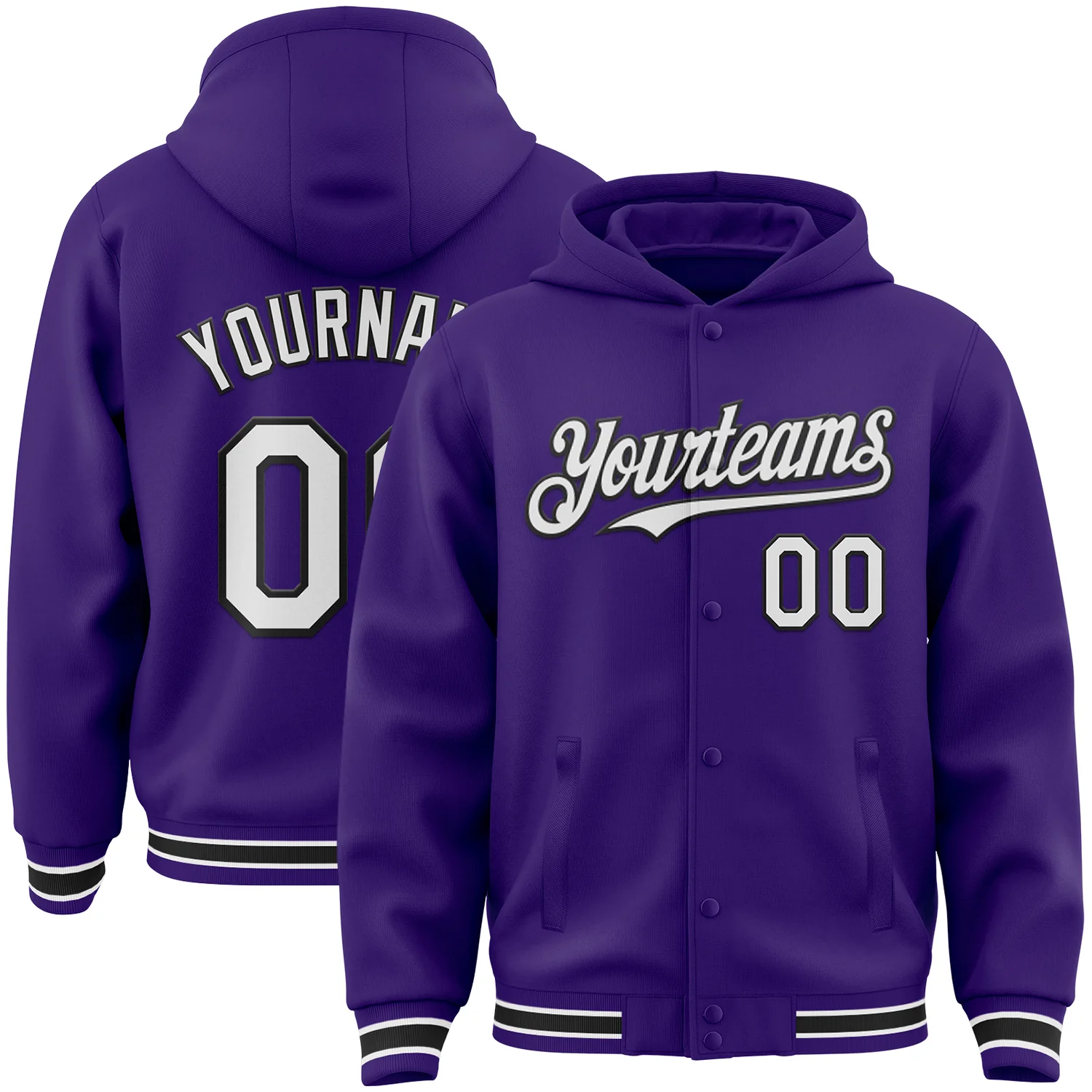 Custom Purple White-Black Bomber Full-Snap Varsity Letterman Hoodie Jacket