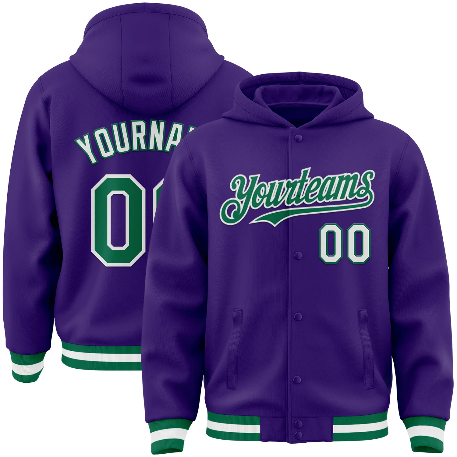 Custom Purple Kelly Green-White Bomber Full-Snap Varsity Letterman Hoodie Jacket