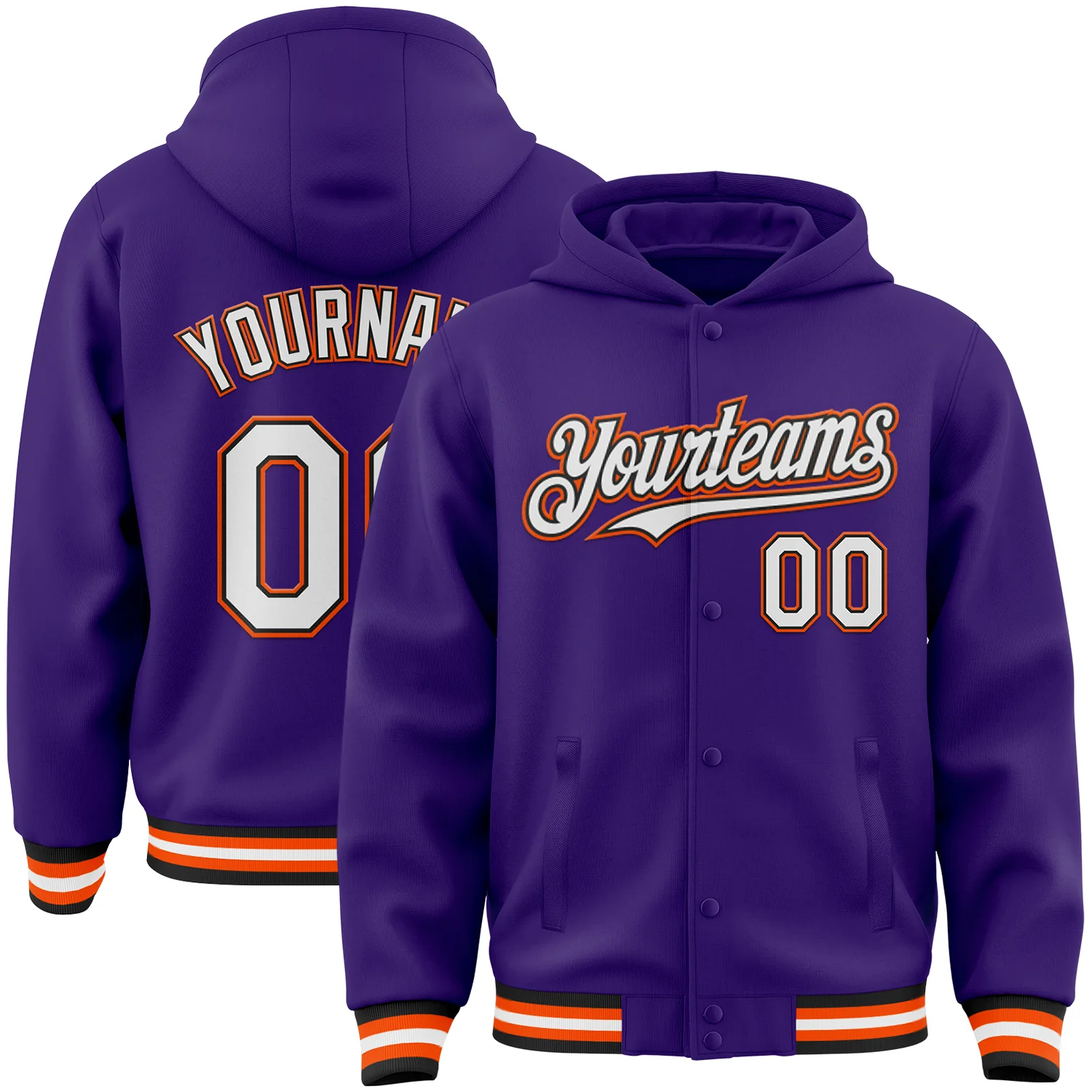 Custom Purple Black-Orange Bomber Full-Snap Varsity Letterman Hoodie Jacket